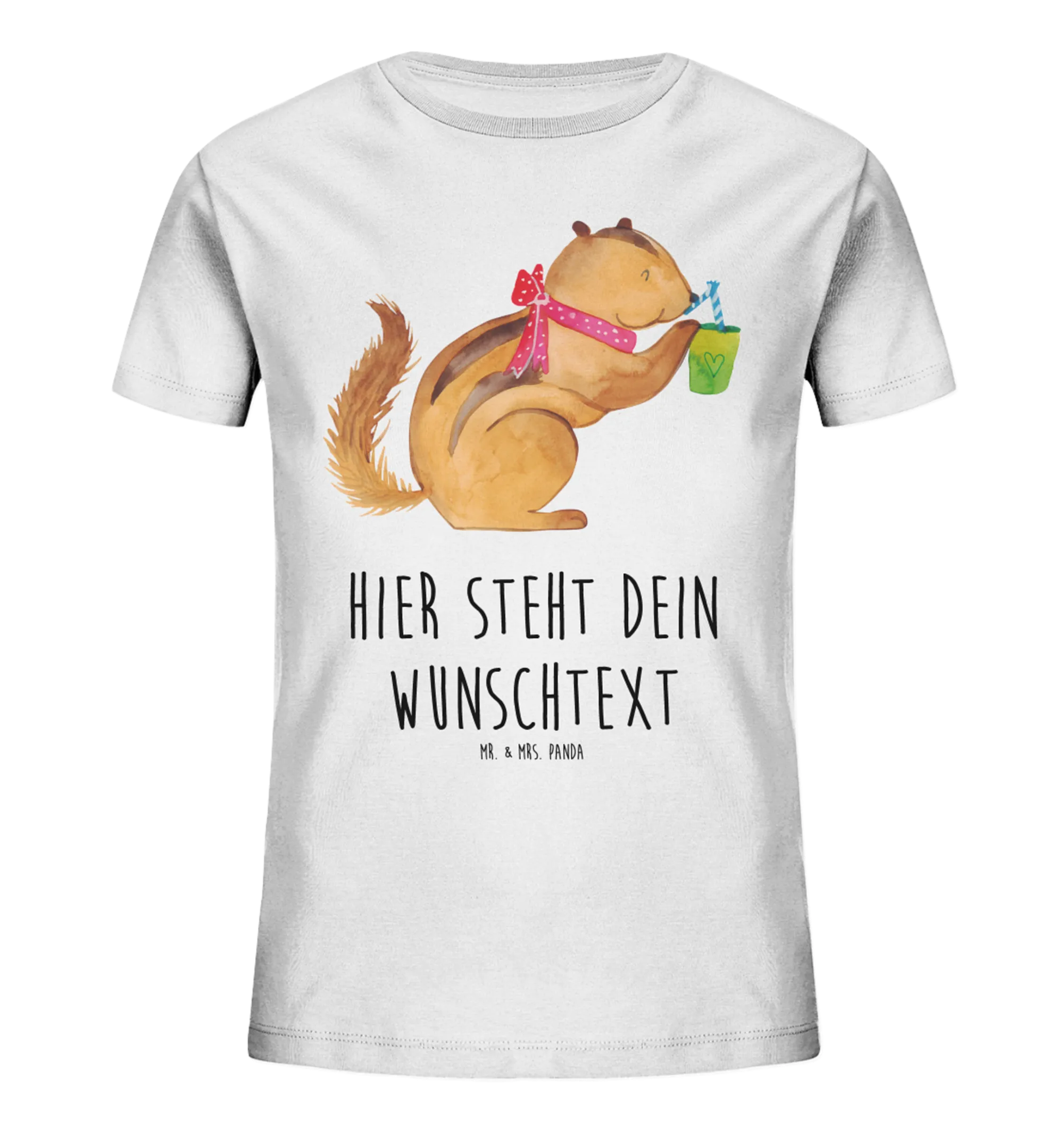 Das personalisierte Kinder T-Shirt mit dem süßen Eichhörnchen Smoothie Motiv ist das perfekte Geschenk für kleine Tierfreunde! Es kommt aus der bezaubernden Small World Kollektion von Mr. & Mrs. Panda und bringt Freude in jedes Kinderzimmer. Dein Kind wird es lieben, das coole T-Shirt zu tragen, denn darauf ist ein niedliches Streifenhörnchen abgebildet, das genüsslich an einem Smoothie schlürft. Dieses T-Shirt ist nicht nur schick, sondern auch unglaublich bequem. Hergestellt aus 100 % Bio-Baumwolle sorgt es für ein angenehmes Tragegefühl und ist somit ideal für den Alltag, beim Spielen oder im Kindergarten.