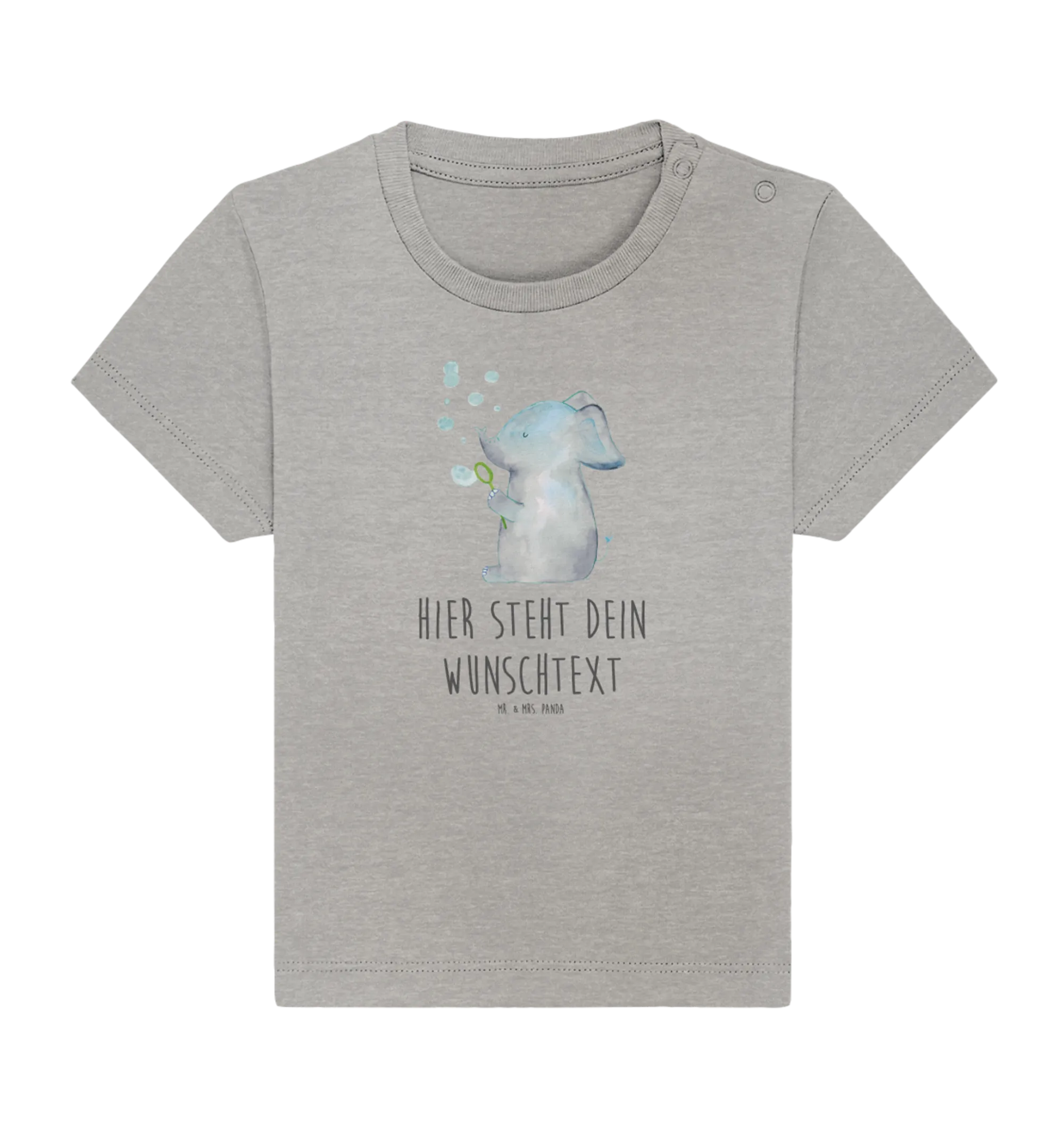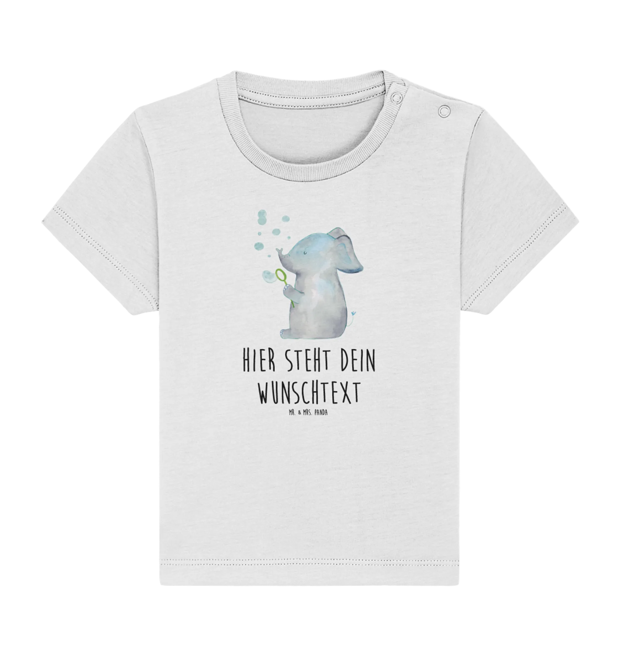 Entdecke das traumhafte personalisierte Baby T-Shirt mit dem zauberhaften Motiv "Elefant Seifenblasen" aus der Small World Kollektion von Mr. & Mrs. Panda! Dieses süße Shirt ist nicht nur ein modisches Highlight, sondern auch ein wunderbares Geschenk für kleine Elefanten-Fans und ihre stolzen Eltern.