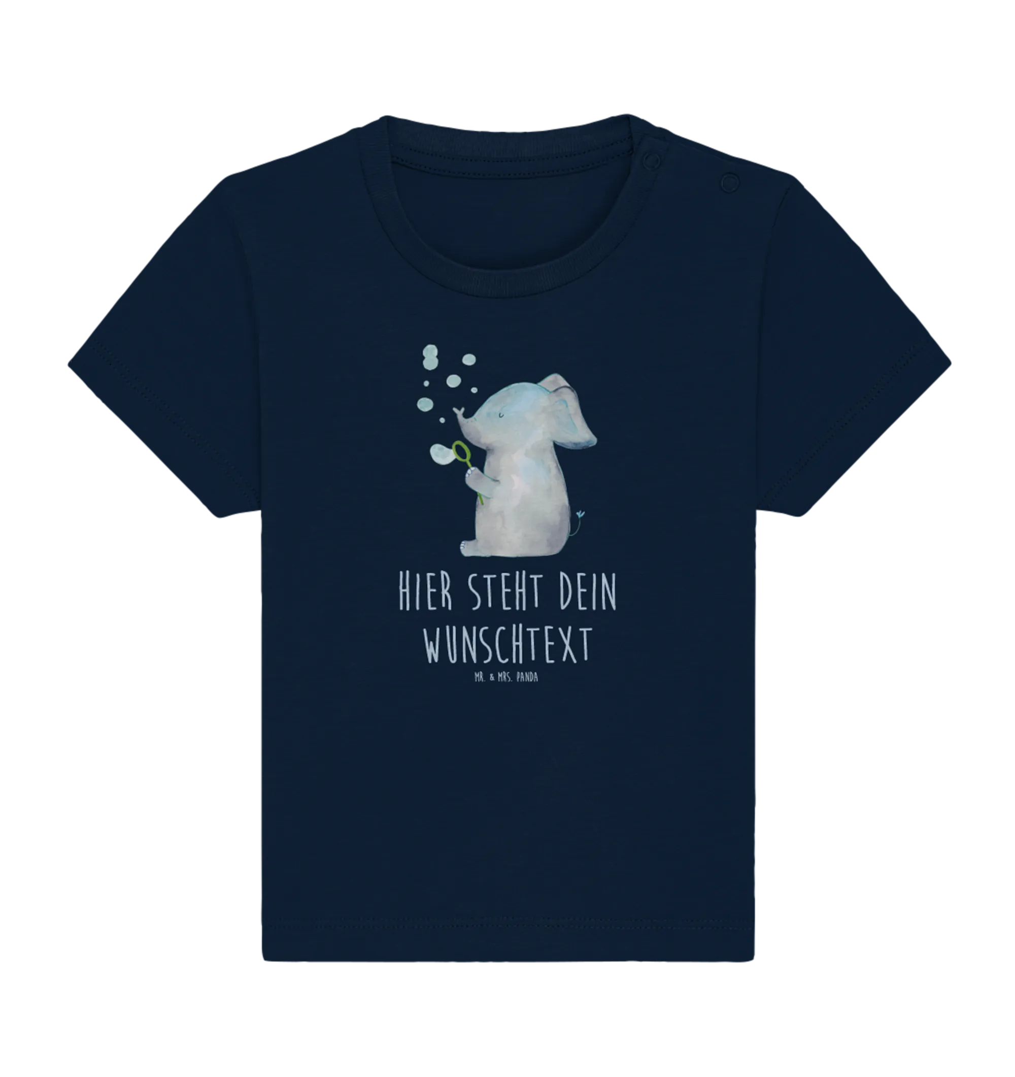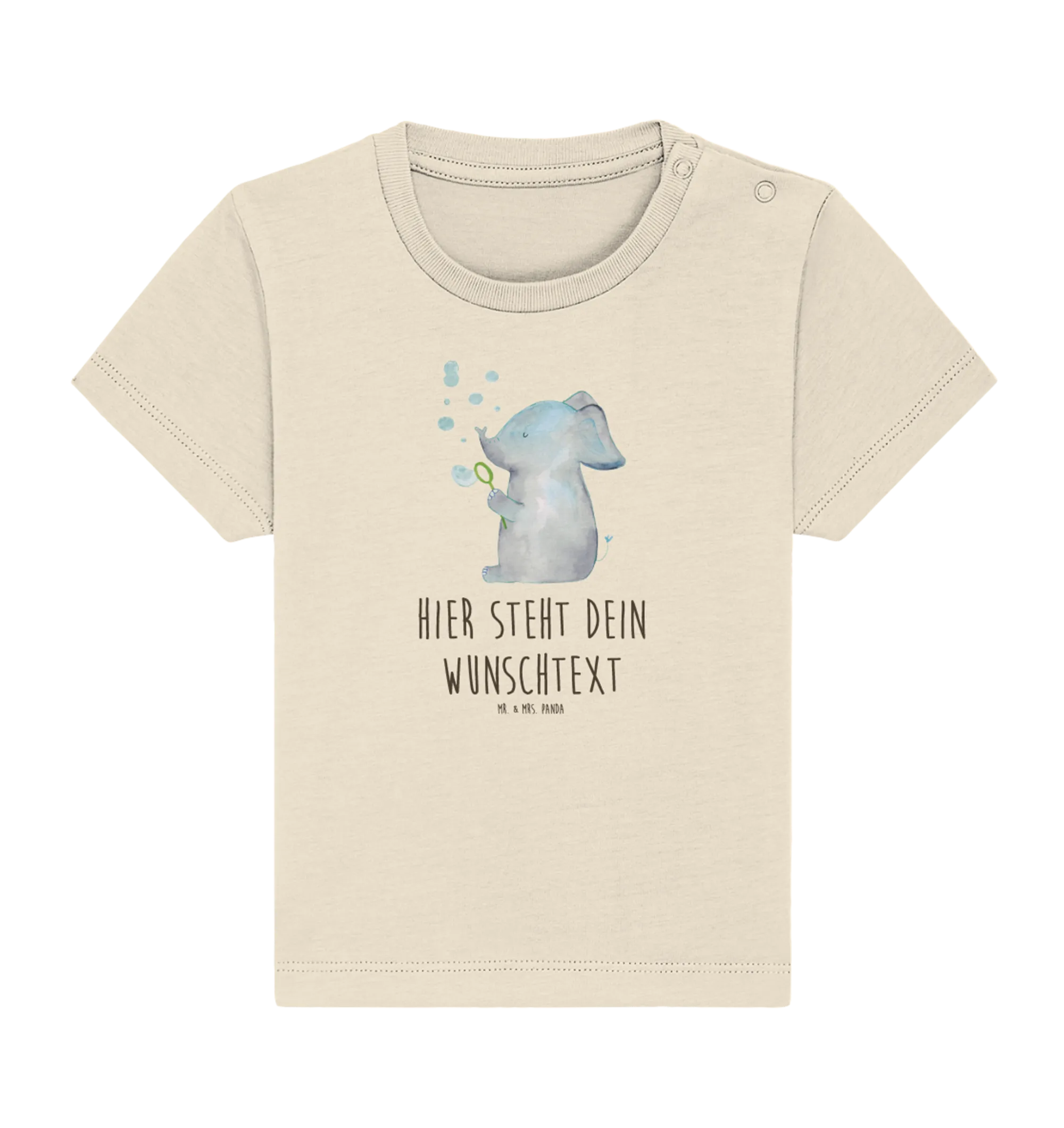 Entdecke unser wunderschönes personalisiertes Baby T-Shirt mit dem zauberhaften Motiv "Elefant Seifenblasen" aus der beliebten Small World Kollektion. Dieses niedliche Shirt bringt Freude und ein Lächeln in den Alltag deines kleinen Schatzes. Der süße Elefant pustet bunte Seifenblasen in die Luft, und wer kann da schon widerstehen?