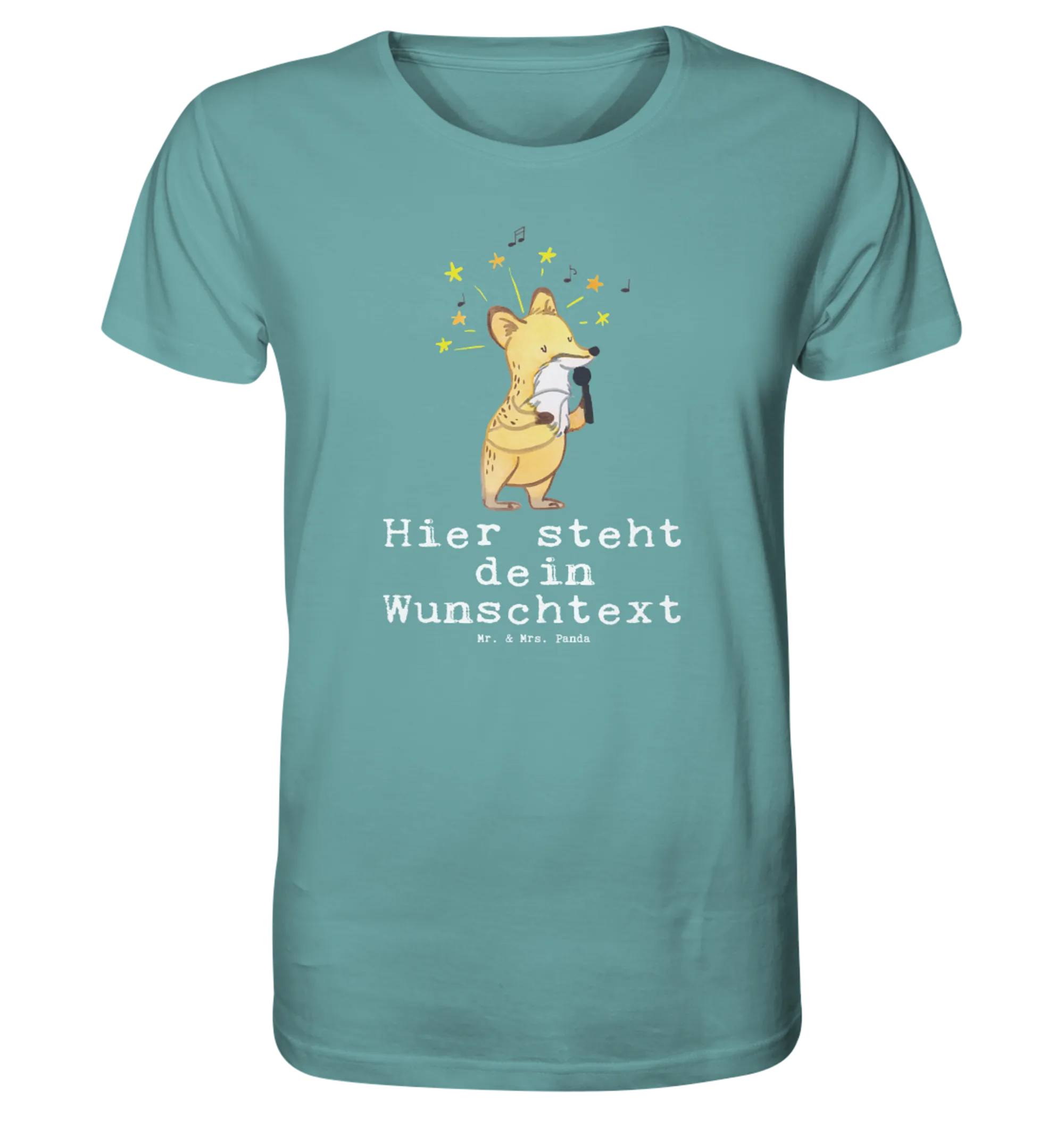 Das Shirt besteht aus 100% hochwertiger Baumwolle und trägt das Öko-Siegel, sodass Du nicht nur im Rampenlicht strahlen kannst, sondern auch bewusst zur Umwelt beiträgst. Die kreative Berufe Kollektion von Mr. & Mrs. Panda vereint niedliche, handgezeichnete Motive mit lustigen Sprüchen. Das Motiv zeigt einen süßen Fuchs mit Mikrofon, der entzückend singt – perfekt für jeden, der die Bühne liebt!