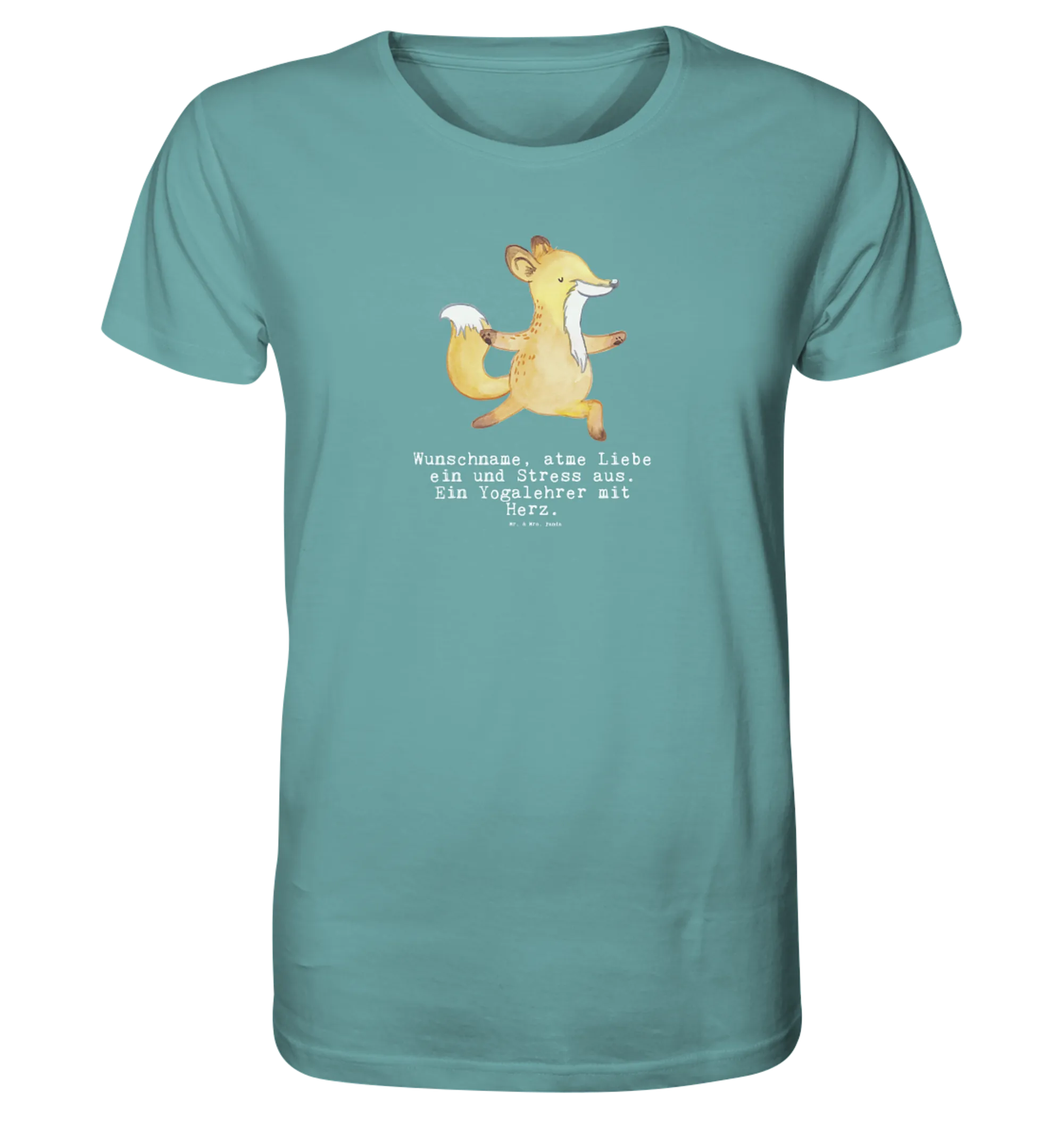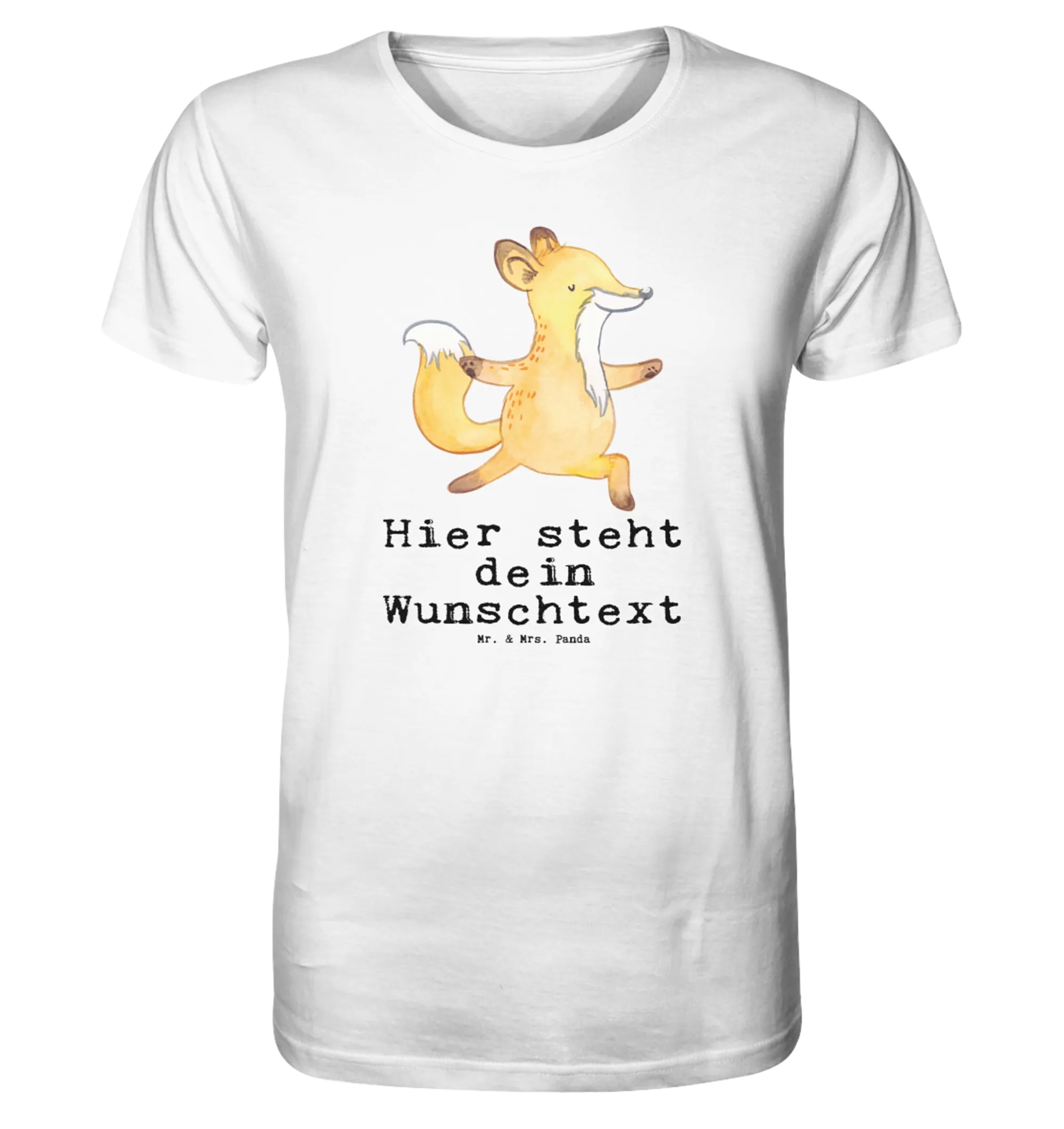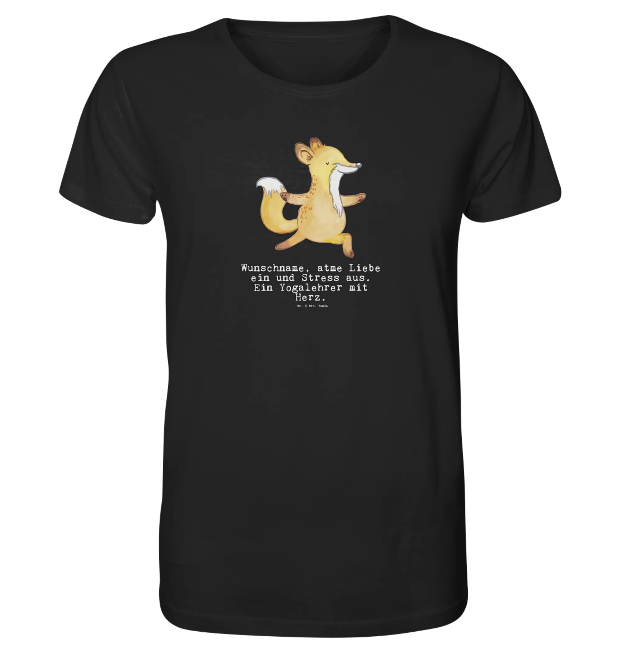 Das personalisierte Shirt "Yogalehrer mit Herz" aus der Berufe Kollektion von Mr. & Mrs. Panda ist das perfekte Geschenk für alle, die Yoga leben und lieben. Egal ob zum Junggesellenabschied, zum Jubiläum oder einfach für einen besonderen Geburtstag – dieses T-Shirt ist immer die richtige Wahl! Mit einem süßen Motiv eines Fuchses, der in der Krieger-Yoga-Stellung posiert, zaubert dieses Shirt jedem ein Lächeln ins Gesicht.