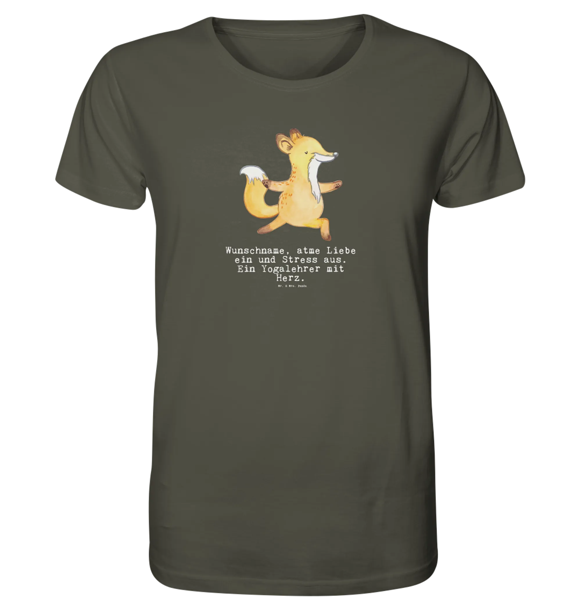 Entdecke unser personalisiertes Shirt für Herren mit dem liebevollen Motiv "Yogalehrer mit Herz" aus der besonderen Kollektion Berufe! Dieses Shirt ist nicht nur ein modisches Kleidungsstück, sondern auch ein perfektes Geschenk für alle Yoga-Enthusiasten, die ihre Leidenschaft in der Kleidung zum Ausdruck bringen möchten. Ob zum Geburtstag, Jubiläum oder einfach als nette Geste für einen Freund oder Kollegen - dieses T-Shirt wird für leuchtende Augen sorgen! Das Motiv zeigt einen süßen Fuchs in einer Yoga-Stellung, die als Krieger bekannt ist. Ein echter Hingucker, der ein Lächeln auf jedes Gesicht zaubert.