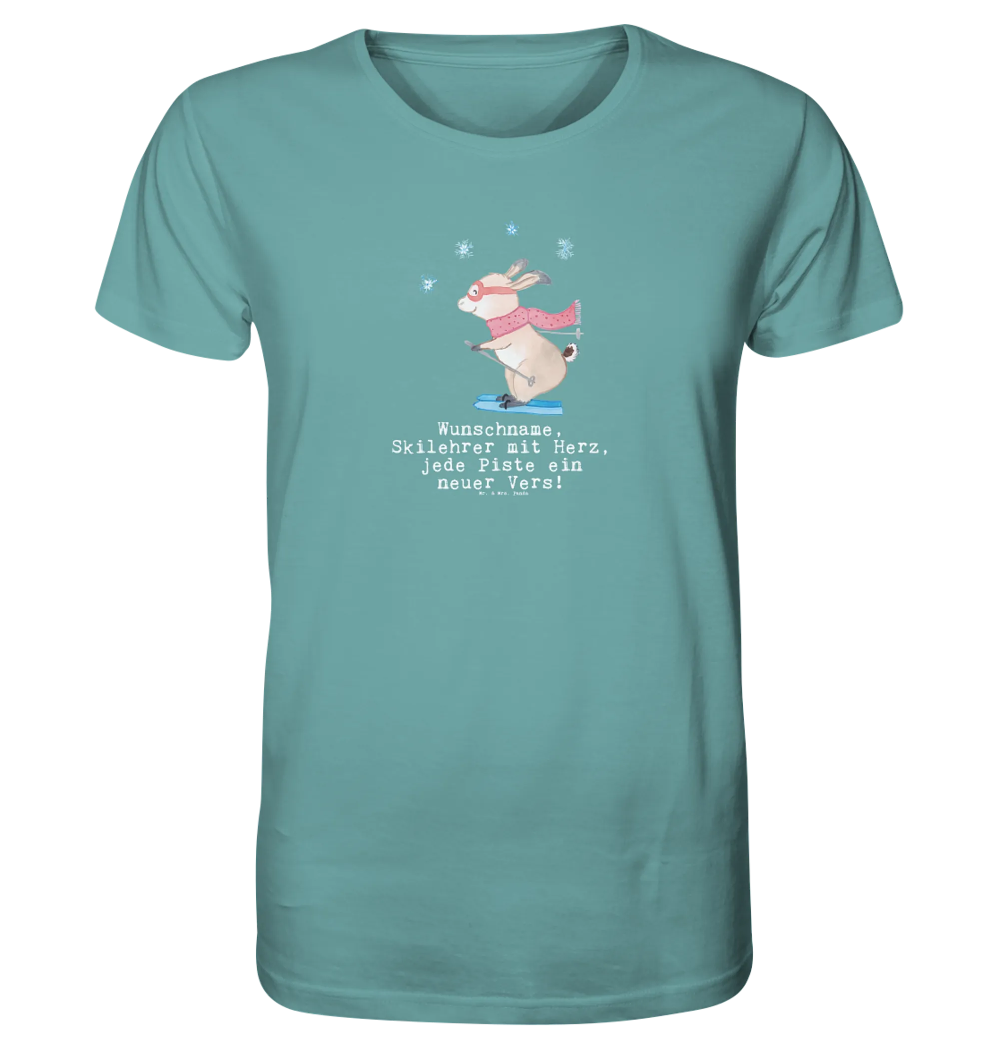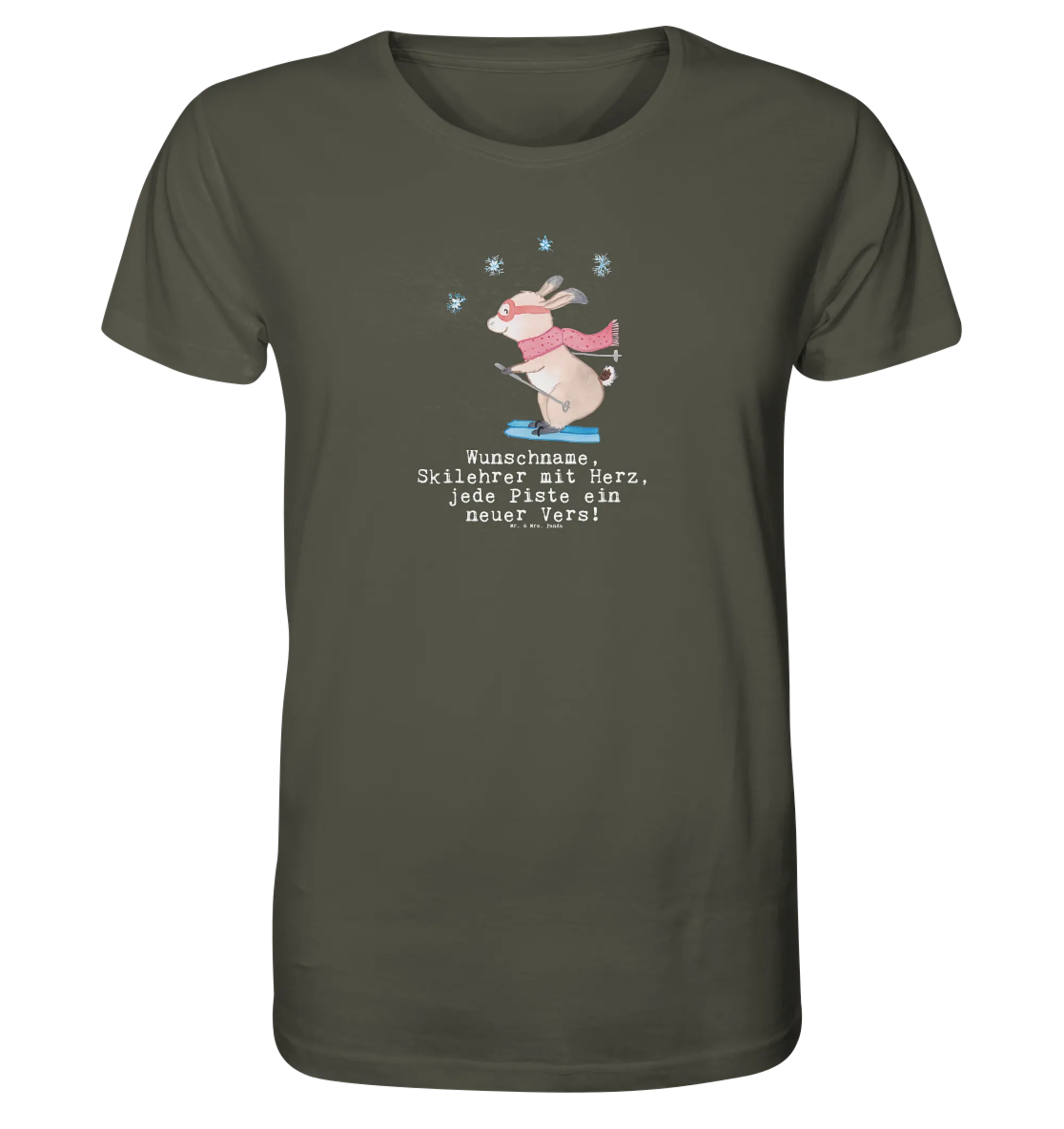 Das personalisierte Shirt Herren "Skilehrer mit Herz" aus der liebevollen Berufe-Kollektion von Mr. & Mrs. Panda ist das perfekte Geschenk für jeden leidenschaftlichen Skilehrer. Mit einem zauberhaften Motiv, das einen süßen Hasen zeigt, der auf Skiern steht und warm angezogen ist, ist dieses Shirt nicht nur optisch ein Highlight, sondern auch äußerst bequem.