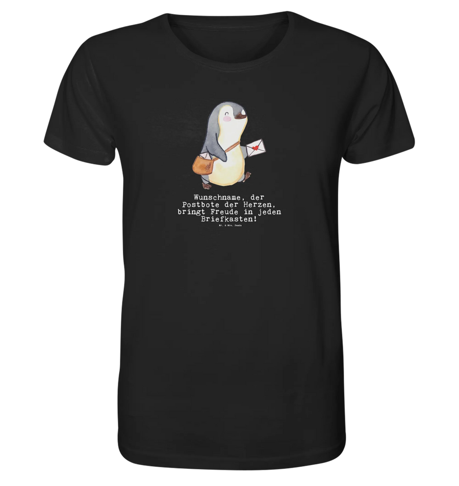 Bestelle jetzt dieses einzigartige T-Shirt und zaubere damit einem besonderen Menschen ein Lächeln ins Gesicht! Es eignet sich nicht nur für den Alltag, sondern kann auch als Schlafshirt oder Nachthemd getragen werden. Lass deine Wertschätzung bei jeder Gelegenheit durchscheinen und verschenke ein Stück Freude – mit dem personalisierten Shirt Herren 'Postbote mit Herz' von Mr. & Mrs. Panda!
