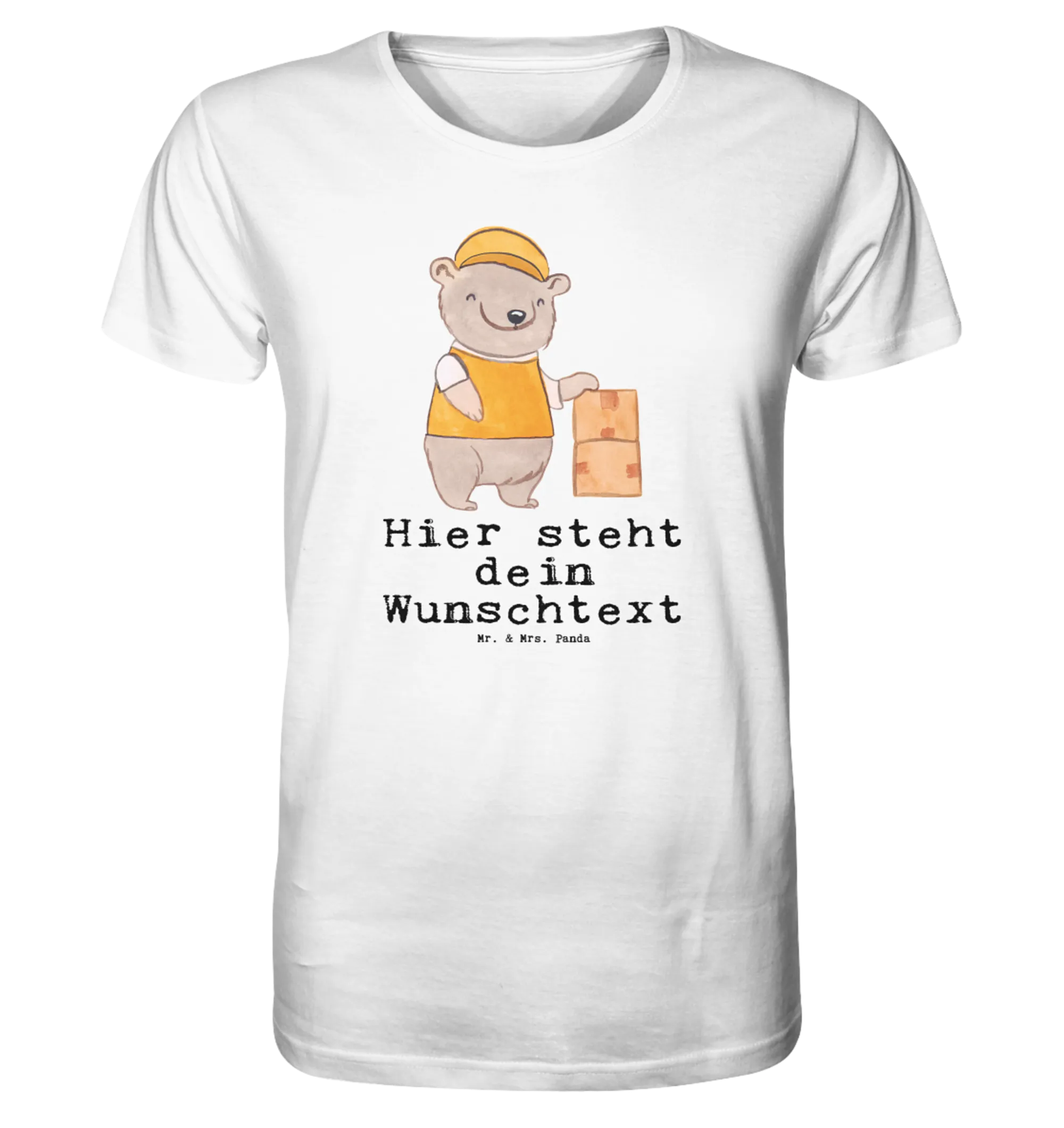 Suchst du das perfekte Geschenk für einen Lagerarbeiter? Dann ist unser personalisiertes Shirt Herren mit dem süßen Motiv 'Lagerarbeiter mit Herz' genau das Richtige! Dieses T-Shirt zeigt einen niedlichen Bären, der mit Orangen im Helm fleißig Kisten schleppen und dafür ein dickes Dankeschön verdient hat.