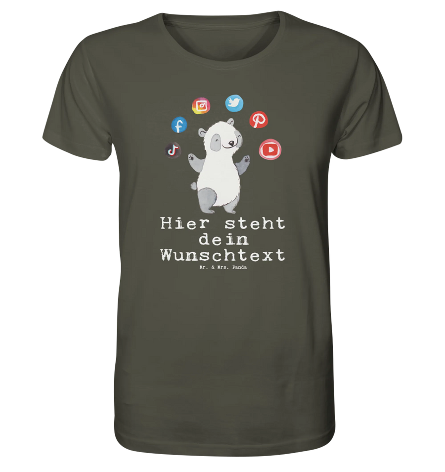 Das personalisierte Shirt Herren mit dem süßen Motiv "Social Media Manager mit Herz" ist das perfekte Geschenk für jeden, der in der digitalen Welt zuhause ist. Egal ob zum Geburtstag, Jubiläum oder als witziges Mitbringsel zum Junggesellenabschied, dieses Shirt ist ein echter Hingucker! Mit dem liebevoll gestalteten Design, wo ein niedlicher Panda fröhlich mit Social Media Icons jongliert, bringst du garantiert ein Lächeln auf die Gesichter deiner Freunde und Kollegen.