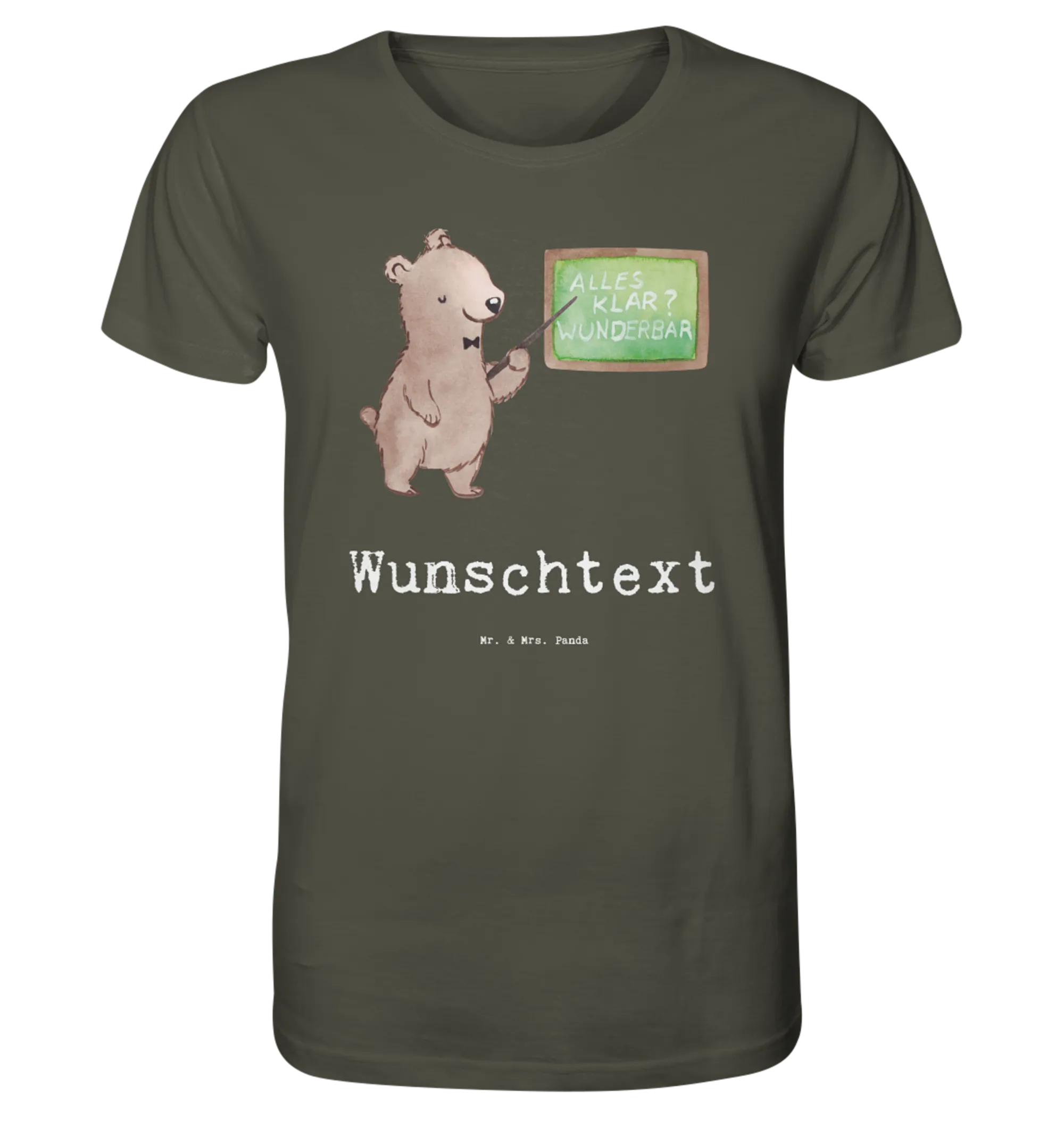 Das personalisierte Shirt für Deutschlehrer mit Herz ist das perfekte Geschenk für jede Gelegenheit. Ob zum Jubiläum, zum Geburtstag oder einfach nur um Danke zu sagen – dieses Shirt bringt Freude und ein Lächeln auf die Gesichter aller Deutschlehrer. Mit dem liebevollen Motiv eines kleinen Bären, der voller Leidenschaft an einer Schultafel steht, wird jeder Deutschunterricht gleich viel bunter und lebendiger.