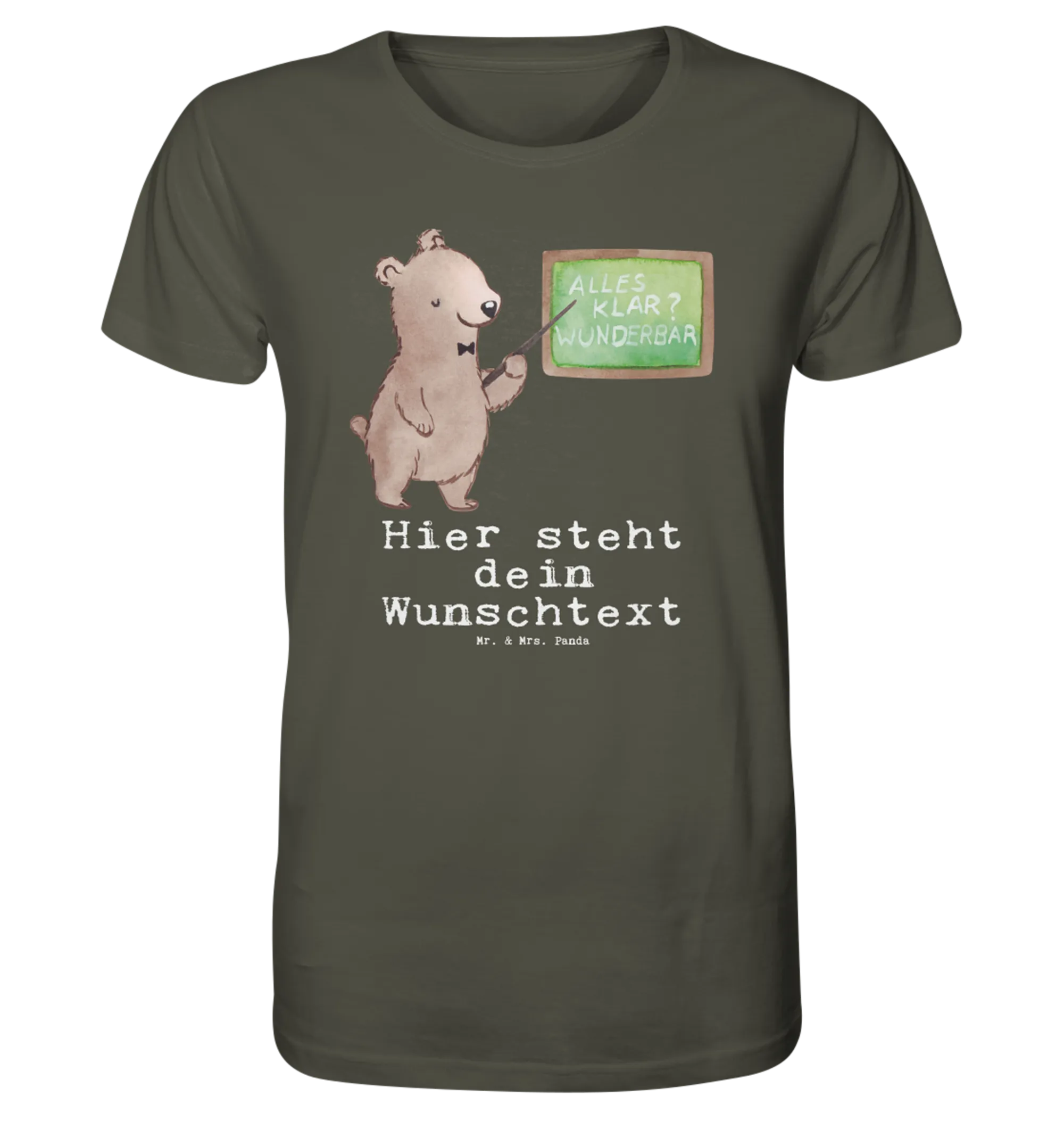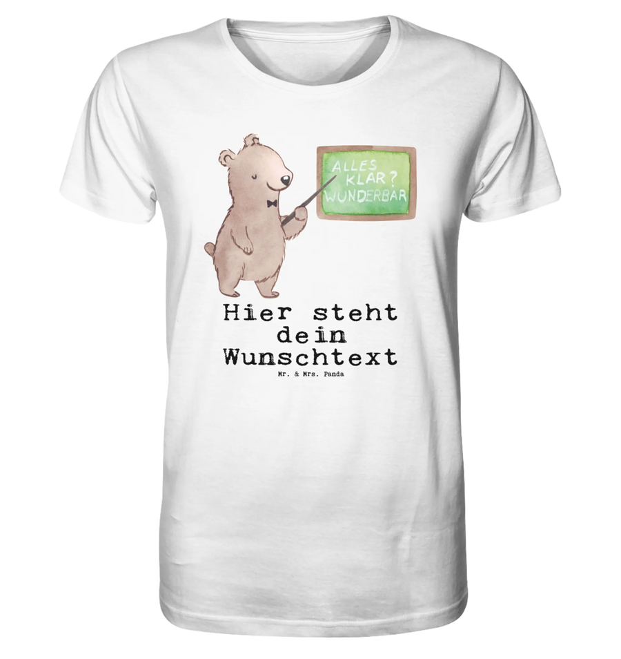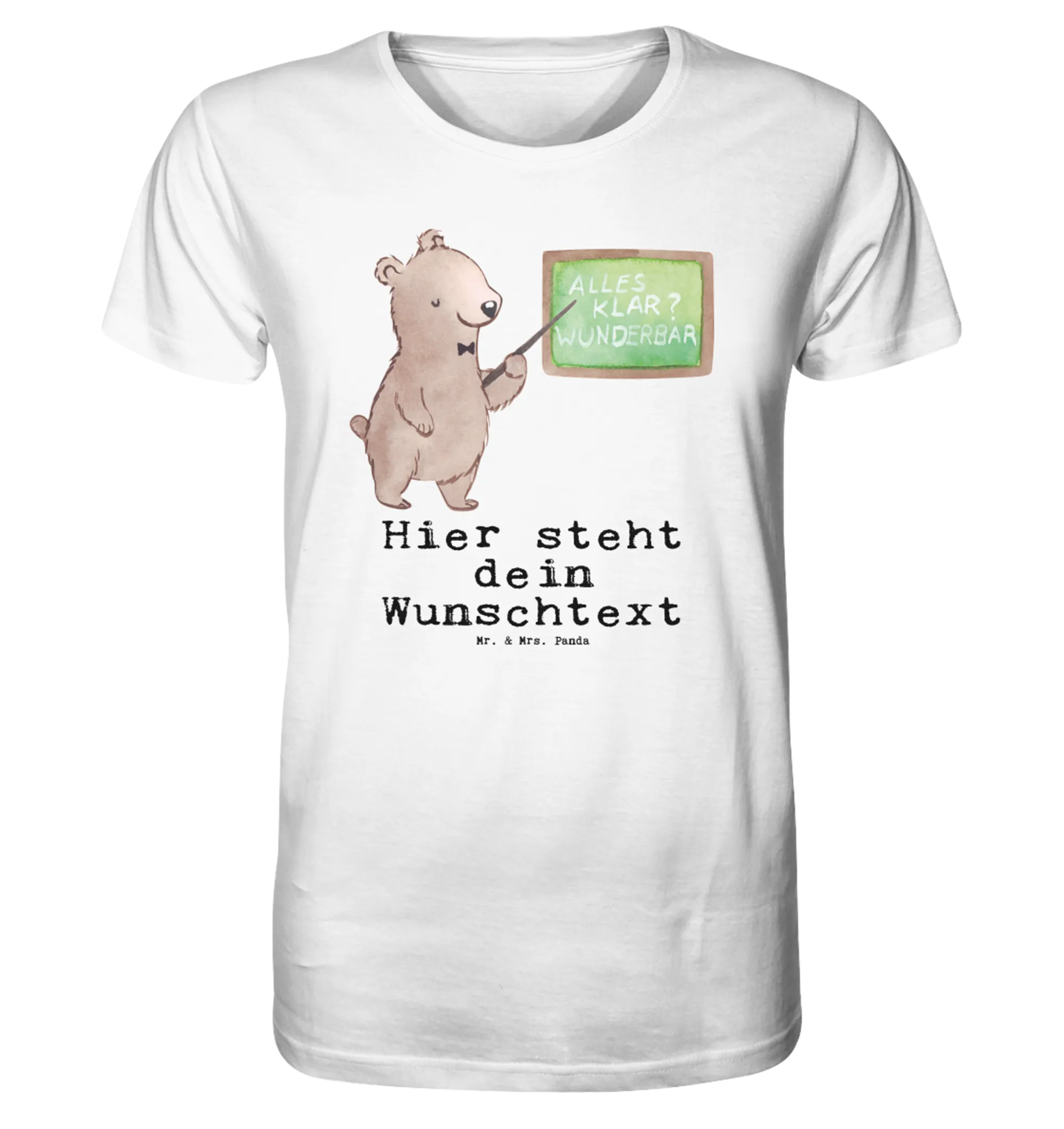 Wenn du nach einem tollen Geschenk zum Junggesellenabschied, einem Jubiläum oder einem besonderen Anlass suchst, dann ist dieses Shirt genau das Richtige. Das Motiv zeigt einen süßen Bären, der an einer Schultafel steht und unterrichtet – einfach bezaubernd!