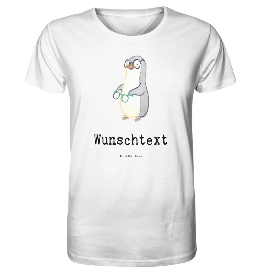 Das personalisierte Shirt Herren "Augenoptiker mit Herz" aus der einzigartigen Berufe Kollektion von Mr. & Mrs. Panda ist das ideale Geschenk für alle Optiker! Ob zum Berufsstart, zur Beförderung oder zum besonderen Jubiläum – dieses T-Shirt bringt garantiert Freude. Mit einem charmanten, handgezeichneten Motiv eines Pinguins, der eine modische Brille hält, und dem sichtlich humorvollen Spruch "Du bist nur ein halber Mensch, wenn du kein Augenoptiker bist", spricht es jeden Optiker und Brillenverkäufer an.