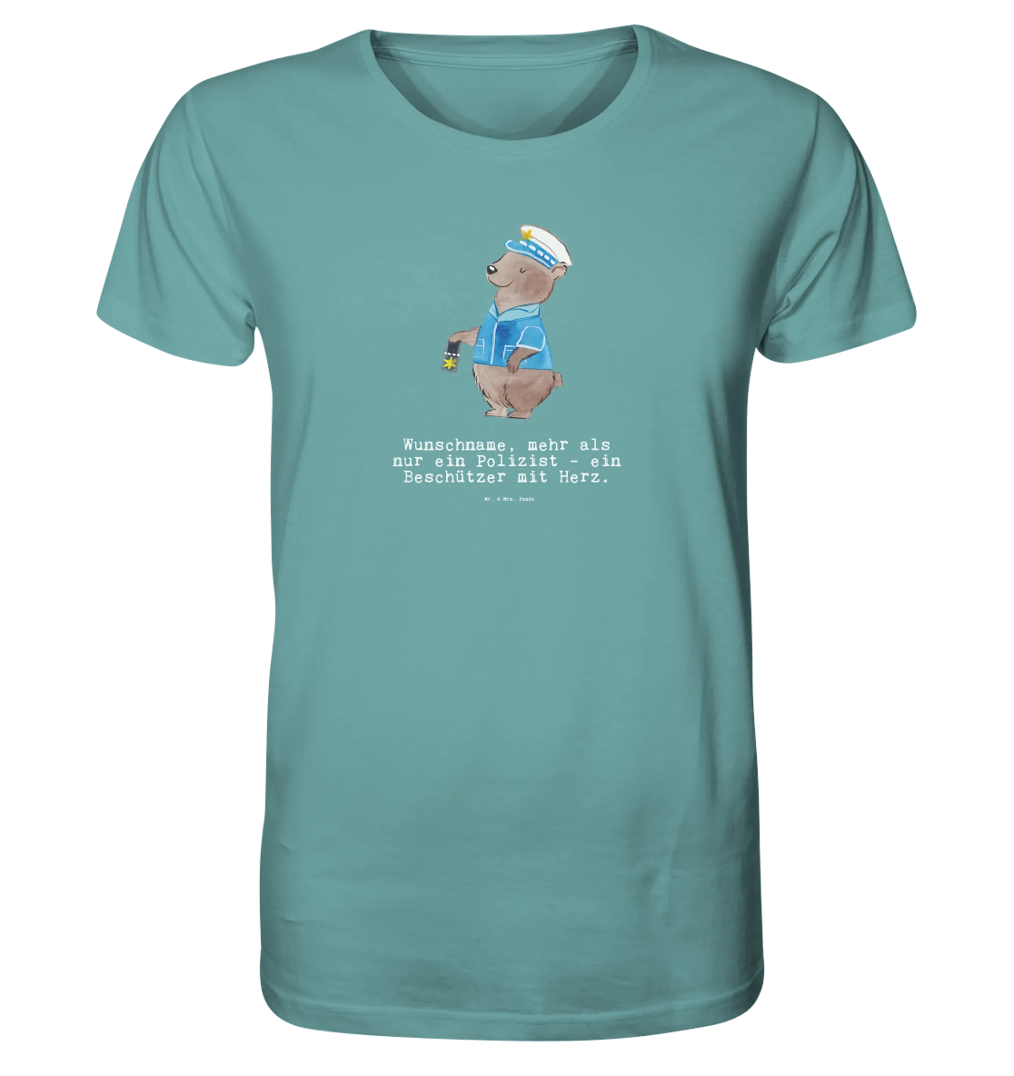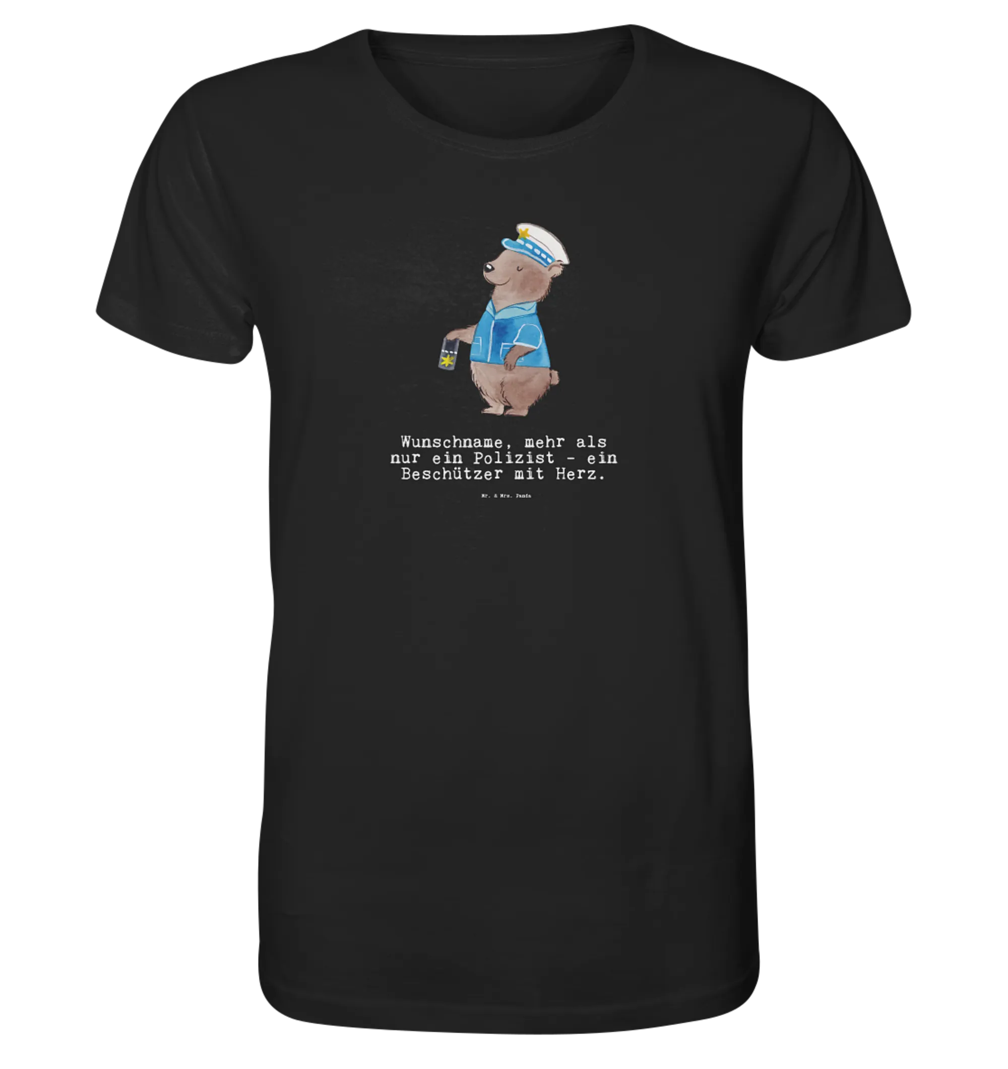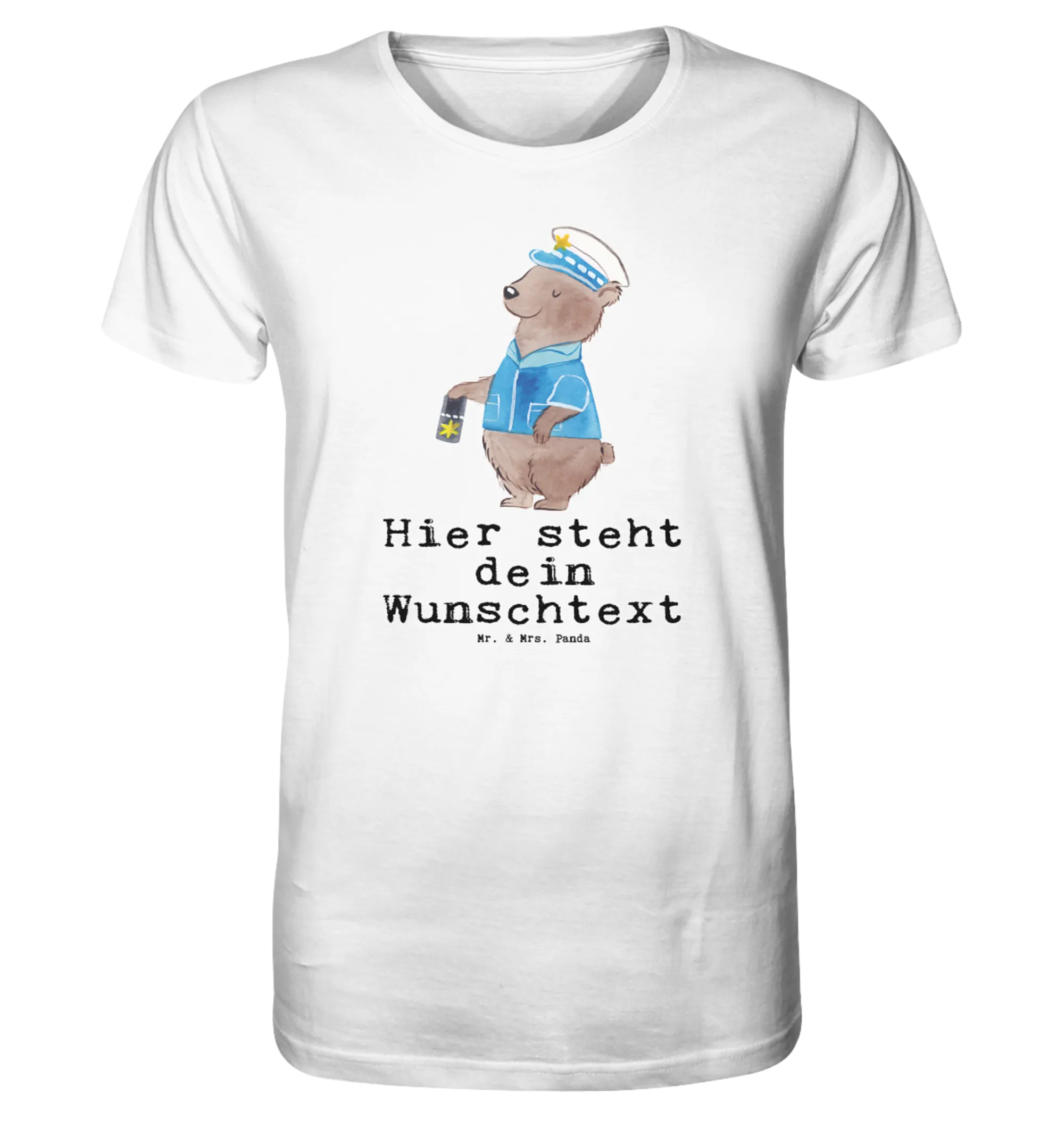 Das Personalisiertes Shirt Herren mit dem Motiv "Polizist mit Herz" ist das perfekte Geschenk für alle Polizistinnen und Polizisten. Egal ob zum Jobbeginn, zur Beförderung, zum Jubiläum oder einfach nur, um Danke zu sagen – dieses Shirt ist immer eine tolle Idee! Der niedliche, stolze Bär in Polizeiuniform wird nicht nur die Herzen deiner Kollegen höher schlagen lassen, sondern auch für große Freude sorgen.
