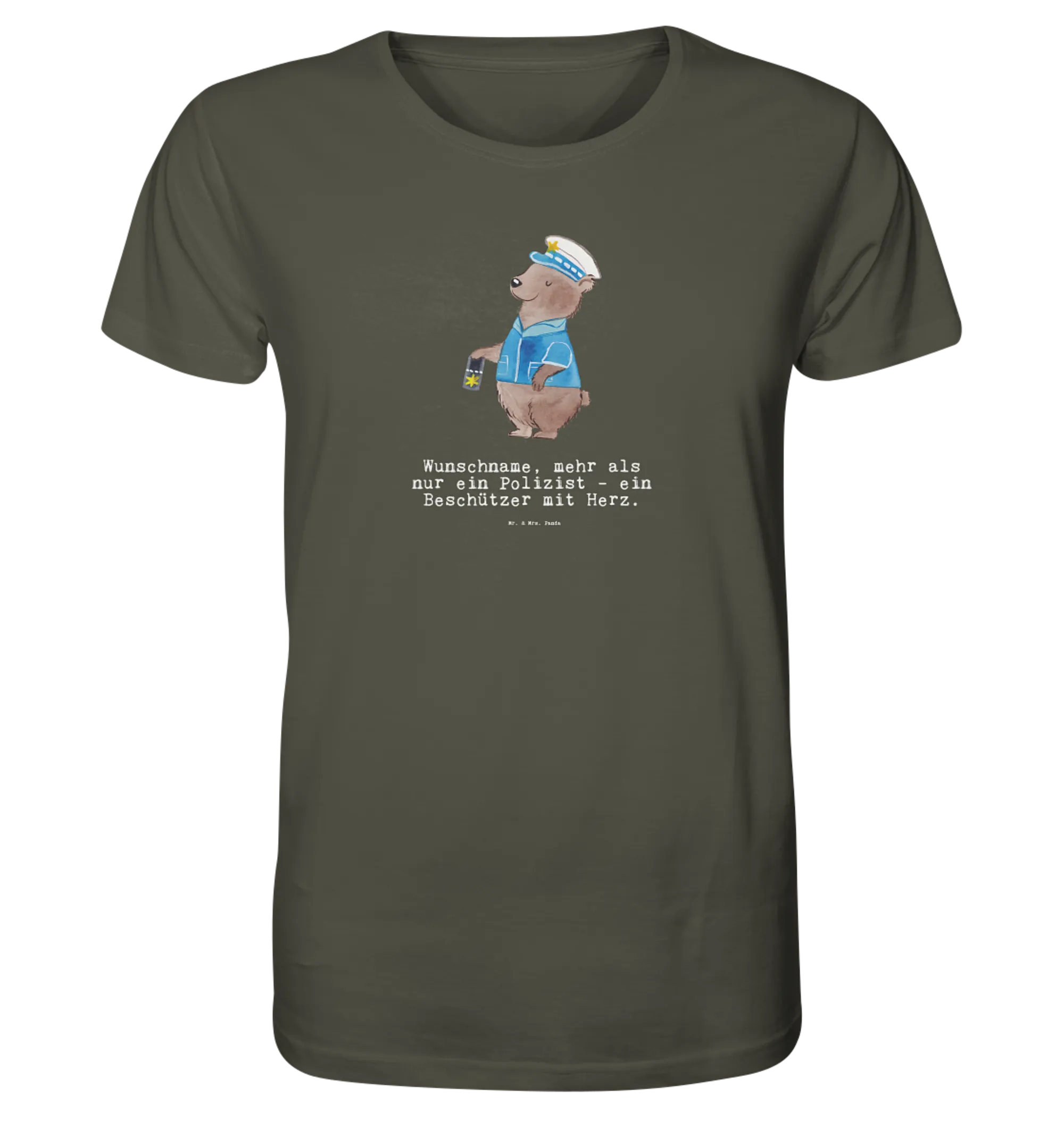 Ob als kleines Dankeschön, zum Jubiläum oder einfach, um einem geschätzten Kollegen zu zeigen, wie sehr du seine Arbeit schätzt – dieses personalisierte Shirt wird immer ein Hit sein. Die Größe passt perfekt und der Khaki-Hintergrund verleiht dem Shirt eine natürliche, neutrale Optik, die zeitlos modisch ist. Lass dich inspirieren und schenke Freude mit dem T-Shirt "Polizist mit Herz"! Es ist nicht nur ein Stück Kleidung, sondern ein Zeichen der Wertschätzung und des Respekts für all das, was Polizisten leisten.