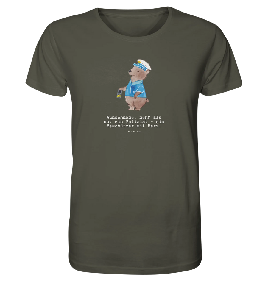 Ob als kleines Dankeschön, zum Jubiläum oder einfach, um einem geschätzten Kollegen zu zeigen, wie sehr du seine Arbeit schätzt – dieses personalisierte Shirt wird immer ein Hit sein. Die Größe passt perfekt und der Khaki-Hintergrund verleiht dem Shirt eine natürliche, neutrale Optik, die zeitlos modisch ist. Lass dich inspirieren und schenke Freude mit dem T-Shirt "Polizist mit Herz"! Es ist nicht nur ein Stück Kleidung, sondern ein Zeichen der Wertschätzung und des Respekts für all das, was Polizisten leisten.