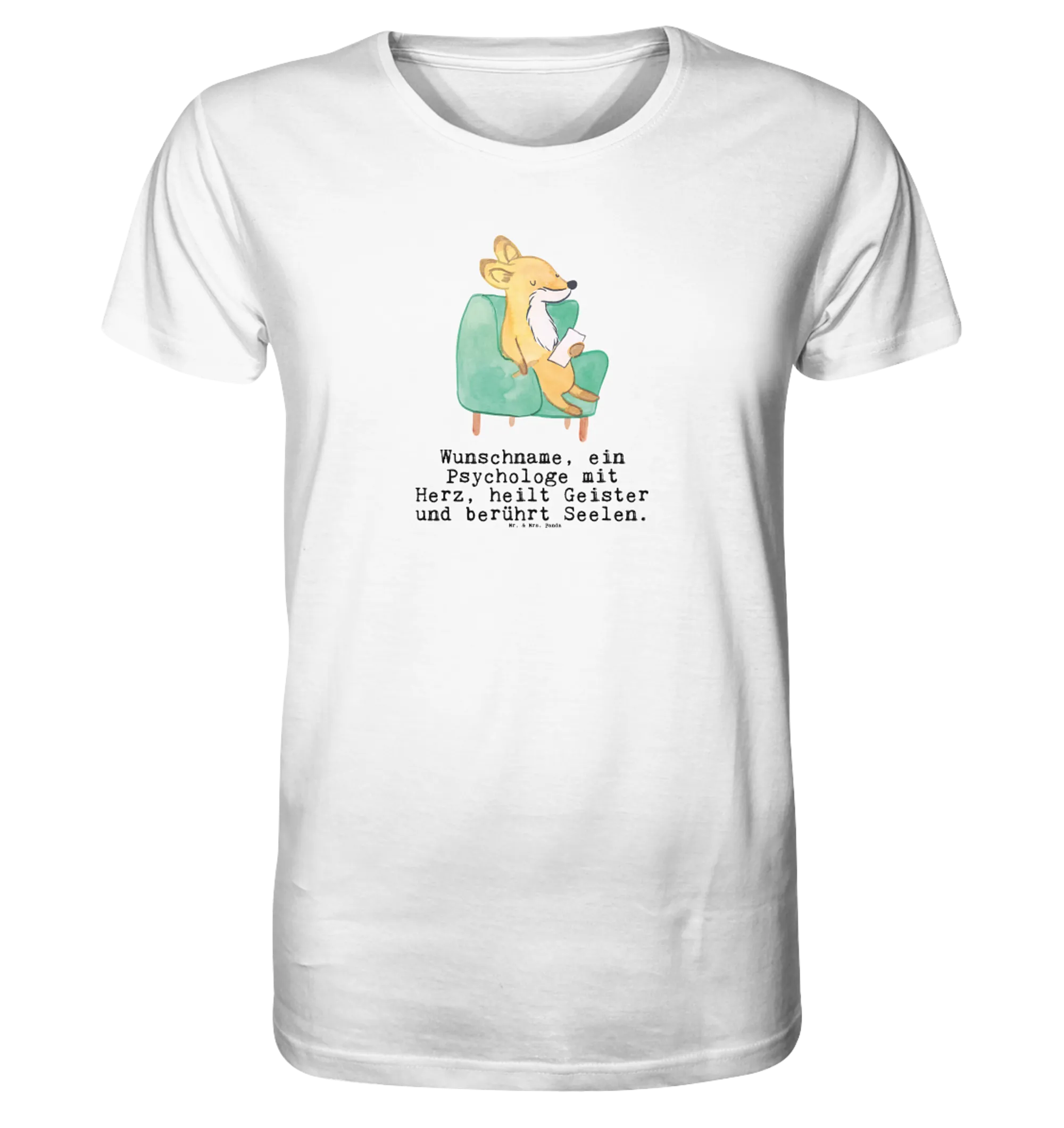 Das personalisierte Shirt Herren mit dem Motiv 'Psychologe mit Herz' aus der einzigartigen Berufe Kollektion von Mr. & Mrs. Panda ist das perfekte Geschenk für alle Psychologen und Psychologinnen.