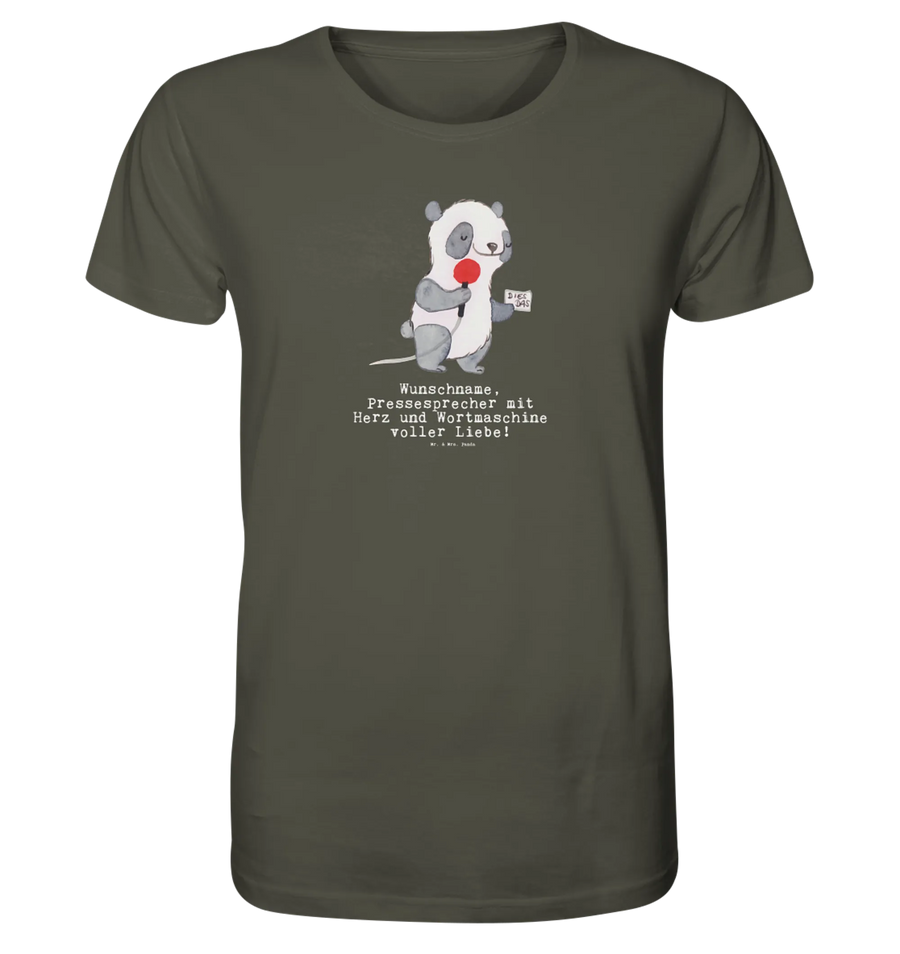 Das Personalisiertes Shirt Herren mit dem Motiv 'Pressesprecher mit Herz' von Mr. & Mrs. Panda ist das perfekte Geschenk für all die unermüdlichen Pressesprecher da draußen! Ob zum Berufseinstieg, zum Jubiläum, zur Beförderung oder einfach nur um mehreren Dankeschön zu sagen – dieses Shirt bringt ein Lächeln auf jedes Gesicht.