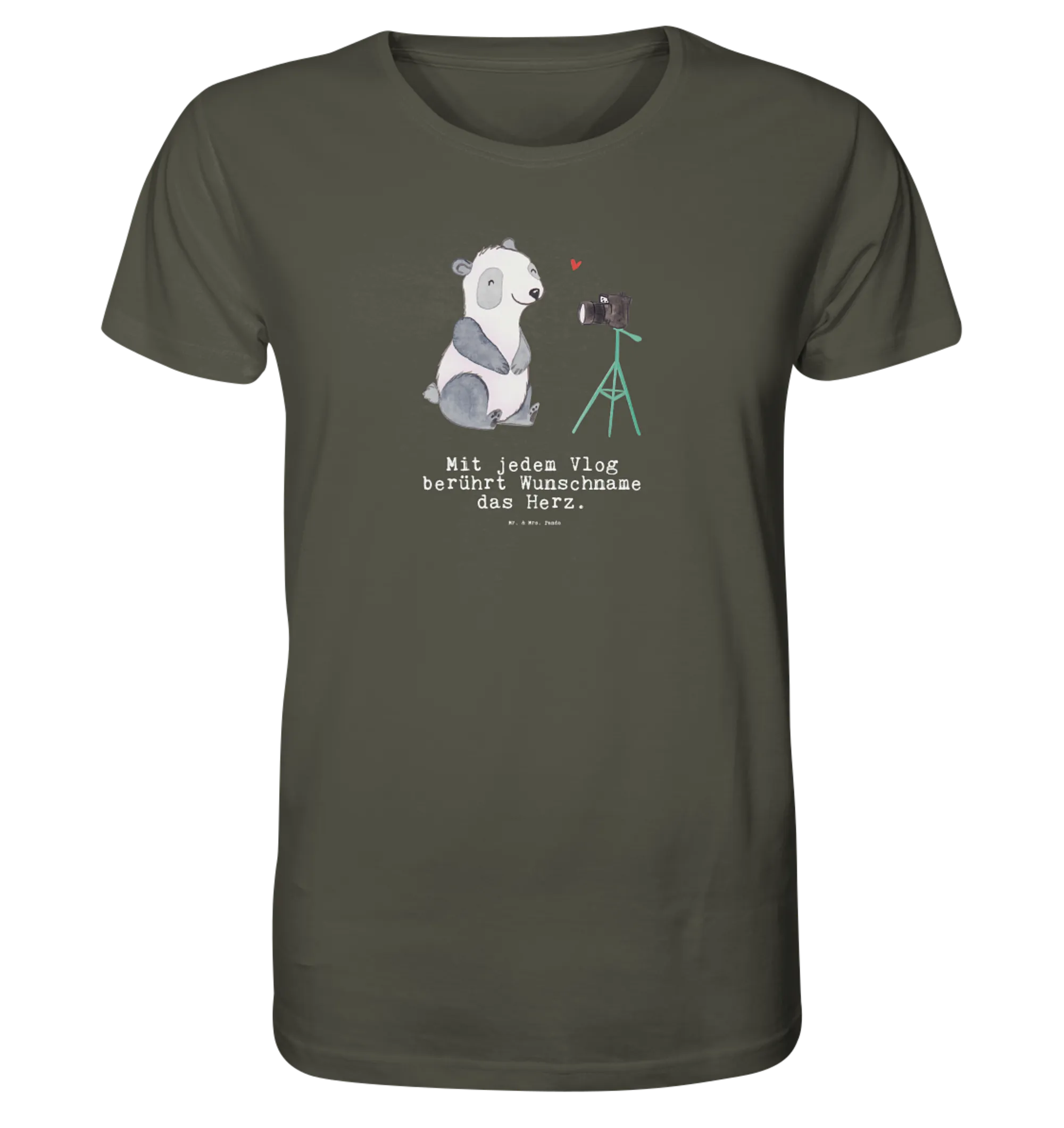 Entdecke das personalisierte Shirt Herren 'Vlogger mit Herz' aus der einzigartigen Mr. & Mrs. Panda Kollektion für Berufe!