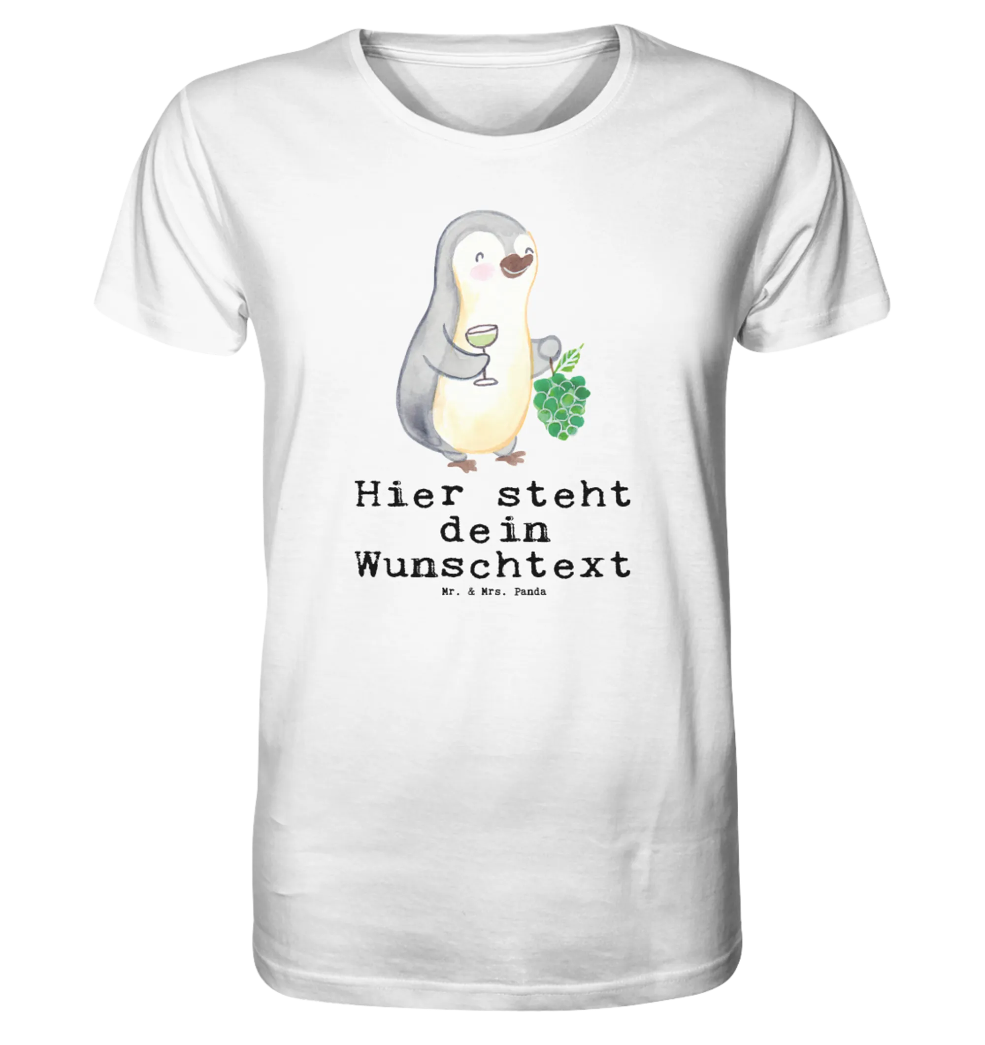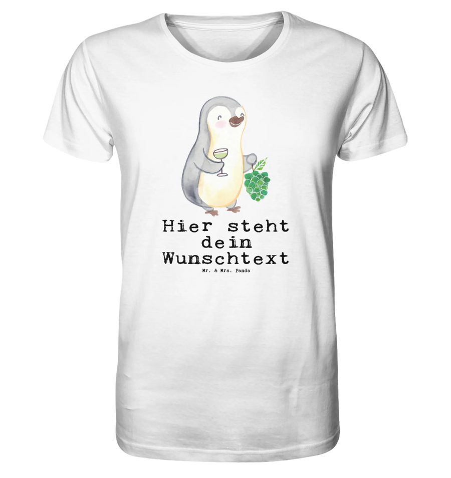 Das personalisierte Shirt Herren mit dem Motif 'Winzer mit Herz' aus der Berufe Kollektion von Mr. & Mrs. Panda ist das perfekte Geschenk für alle Weinliebhaber und Winzer. Mit einem fröhlichen, handgezeichneten Pinguin, der Weintrauben in der einen Hand und ein gefülltes Glas Wein in der anderen hält, bringt dieses Shirt ein Lächeln auf die Gesichter aller Trinker und Genießer.