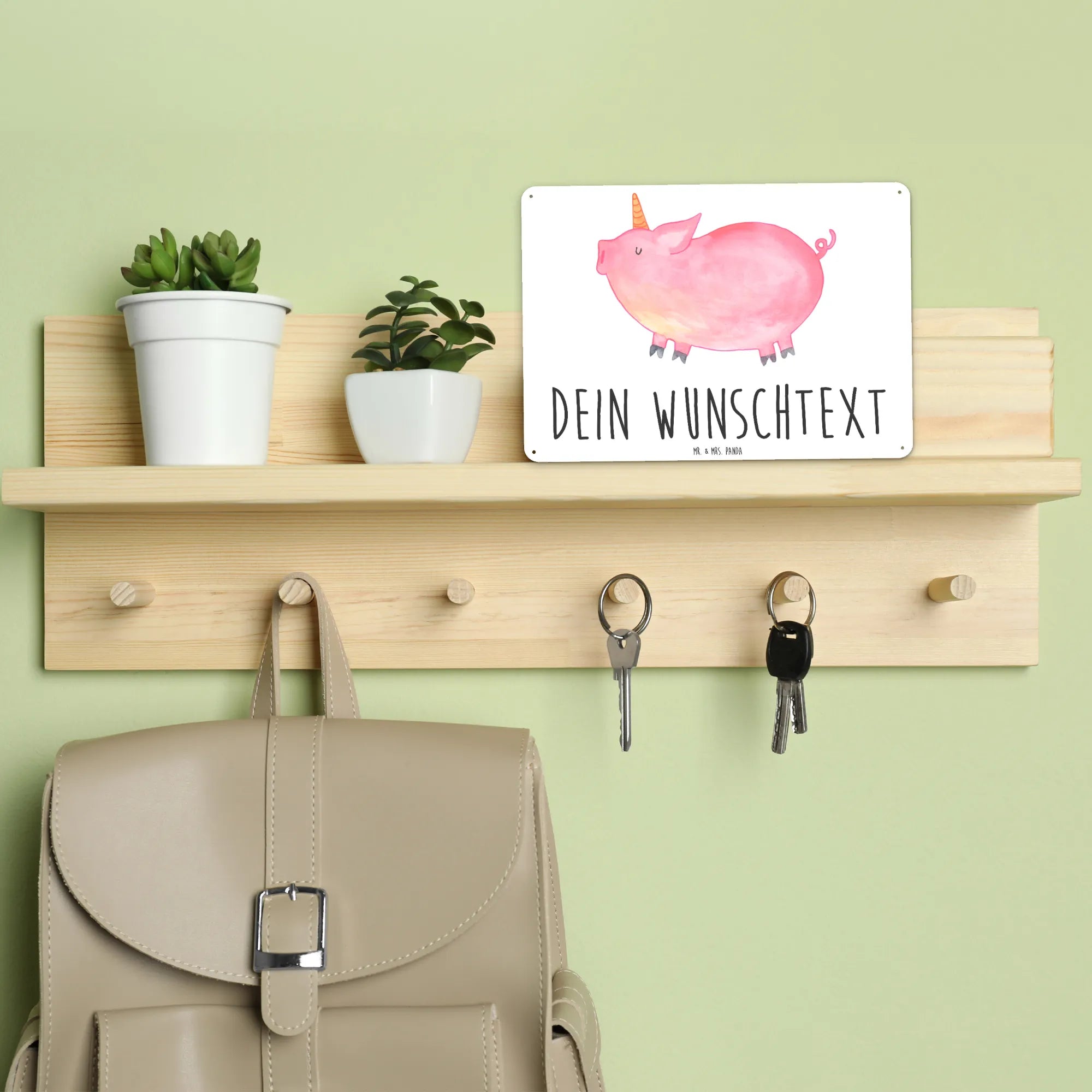 Das personalisierte Blechschild "Einhorn Schweinhorn" von Mr. & Mrs. Panda ist das perfekte Geschenk für alle, die Einhörner lieben. Mit einem peppigen Spruch, der dich ermutigt, alles zu sein, was du möchtest, bringt es Freude und eine besondere Note in jeden Raum.