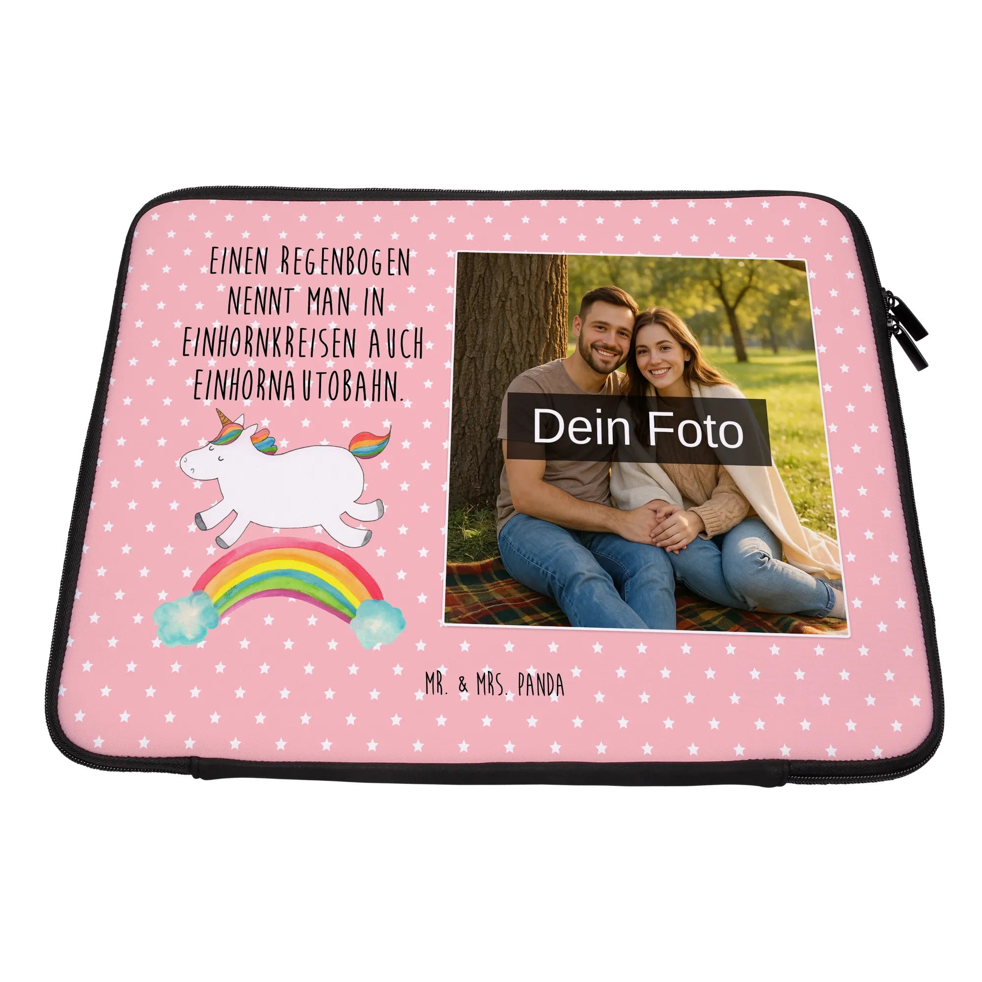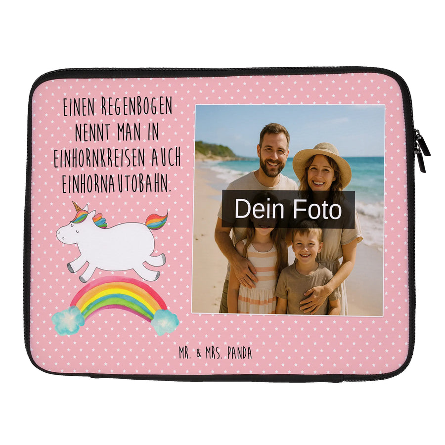 Personalisierte Foto Notebook Tasche Einhorn Regenbogen – Mr. & Mrs. Panda