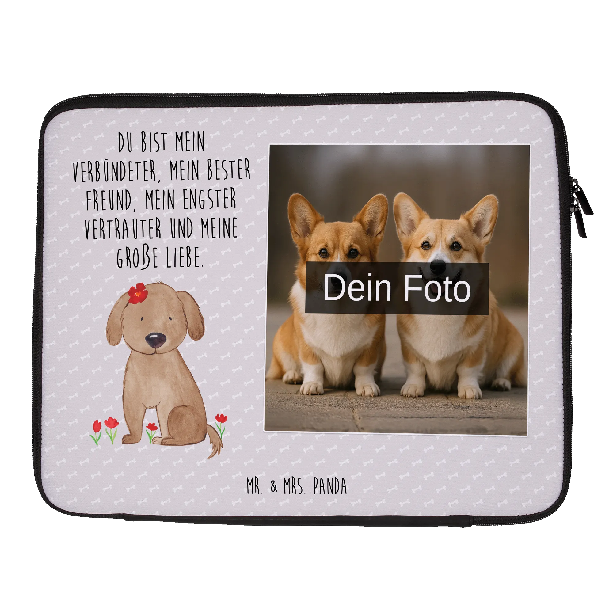 Personalisierte Foto Notebook Tasche Hund Dame - 33 x 42 cm - Grau Pastell