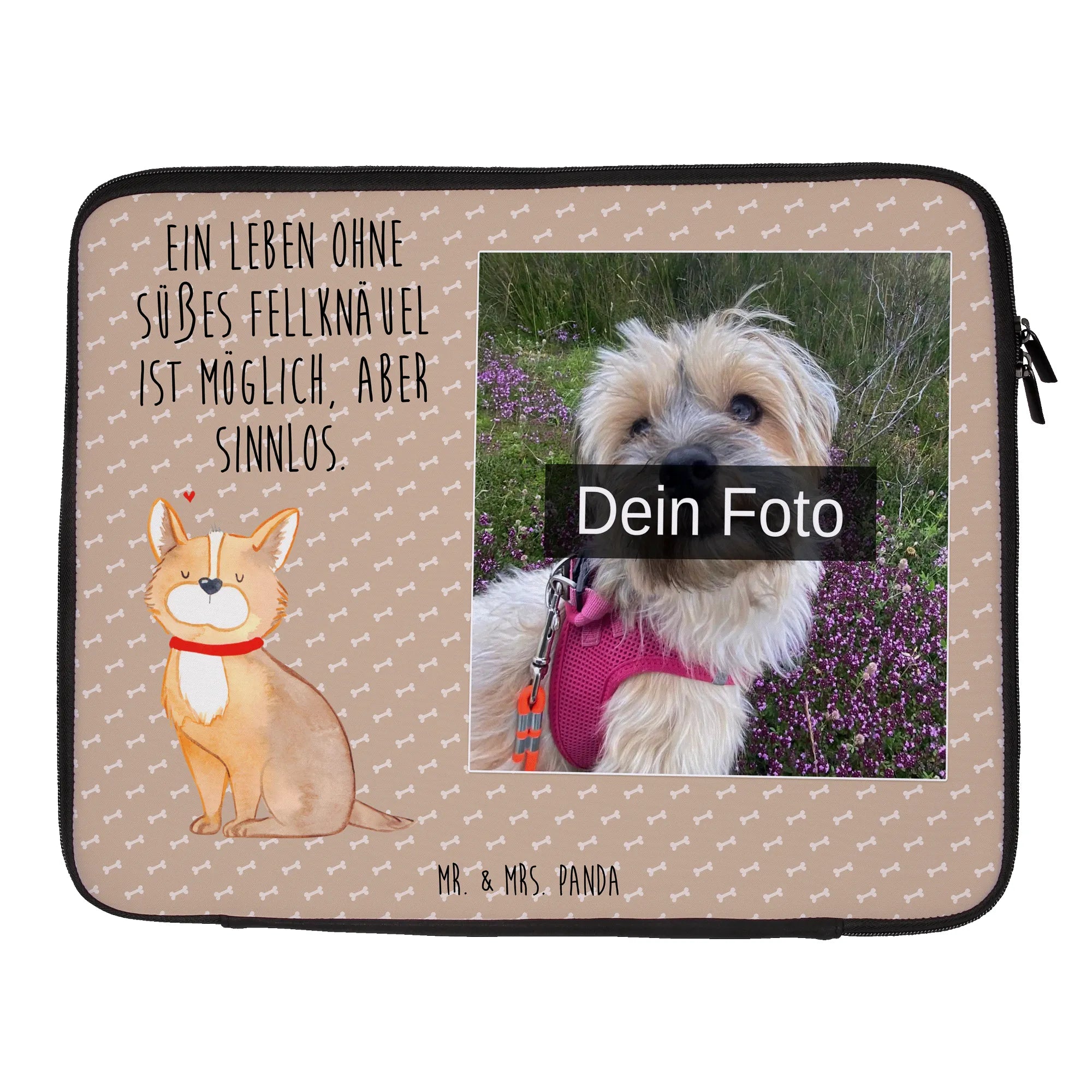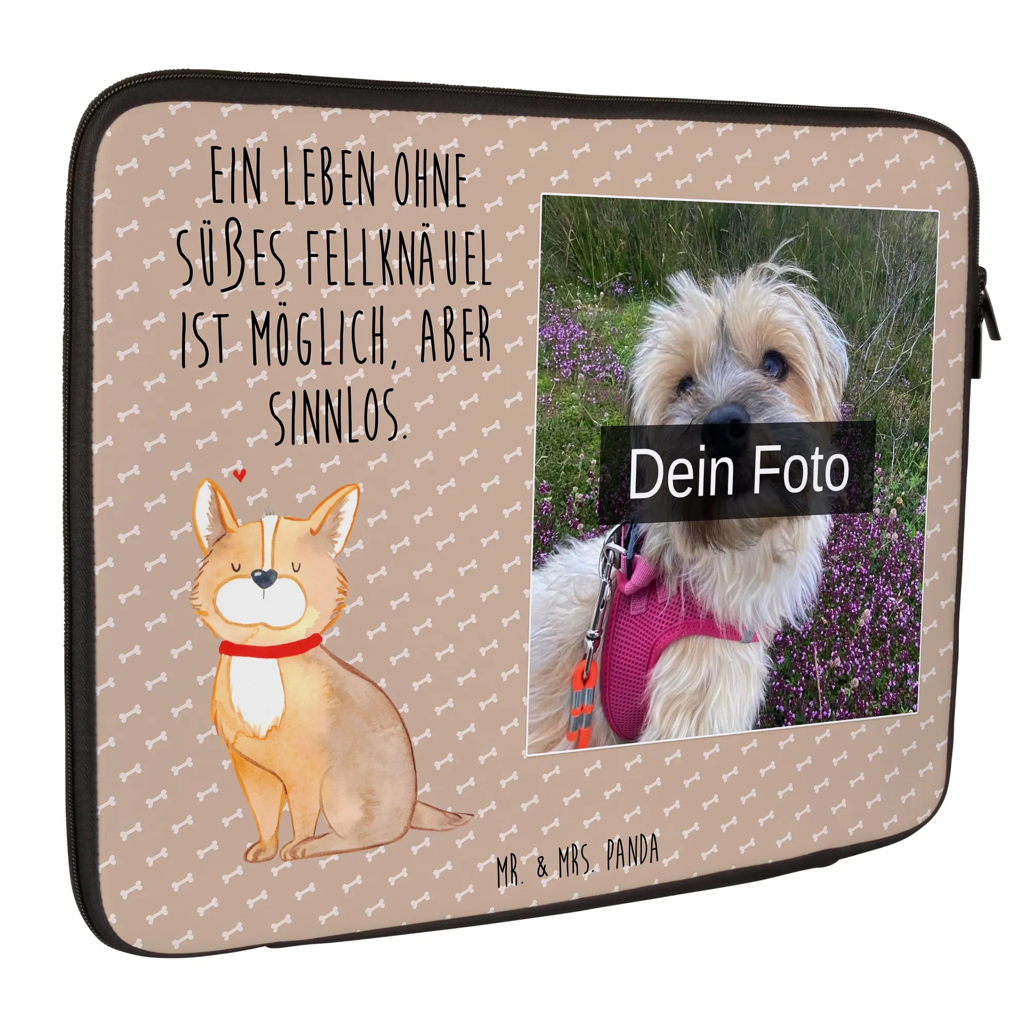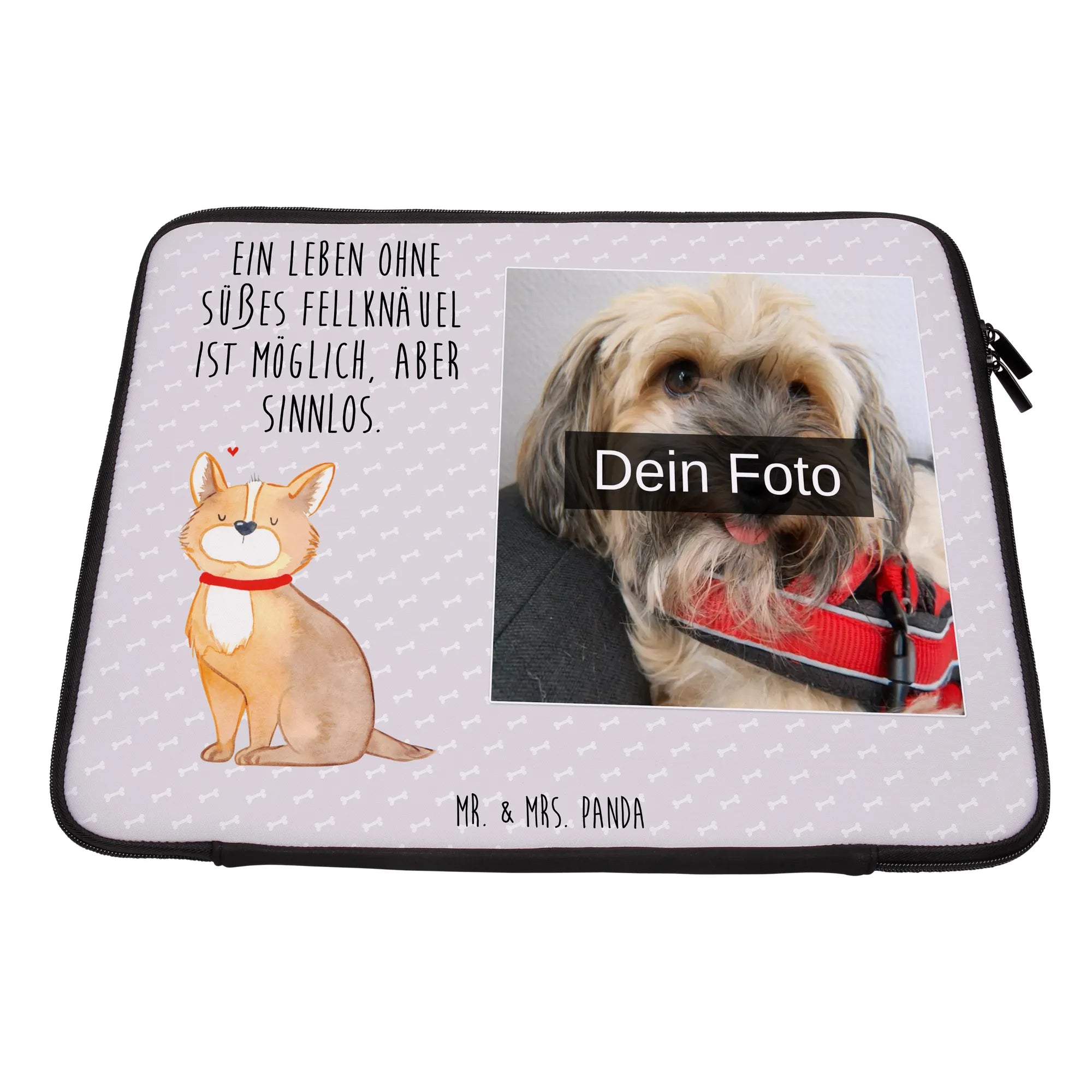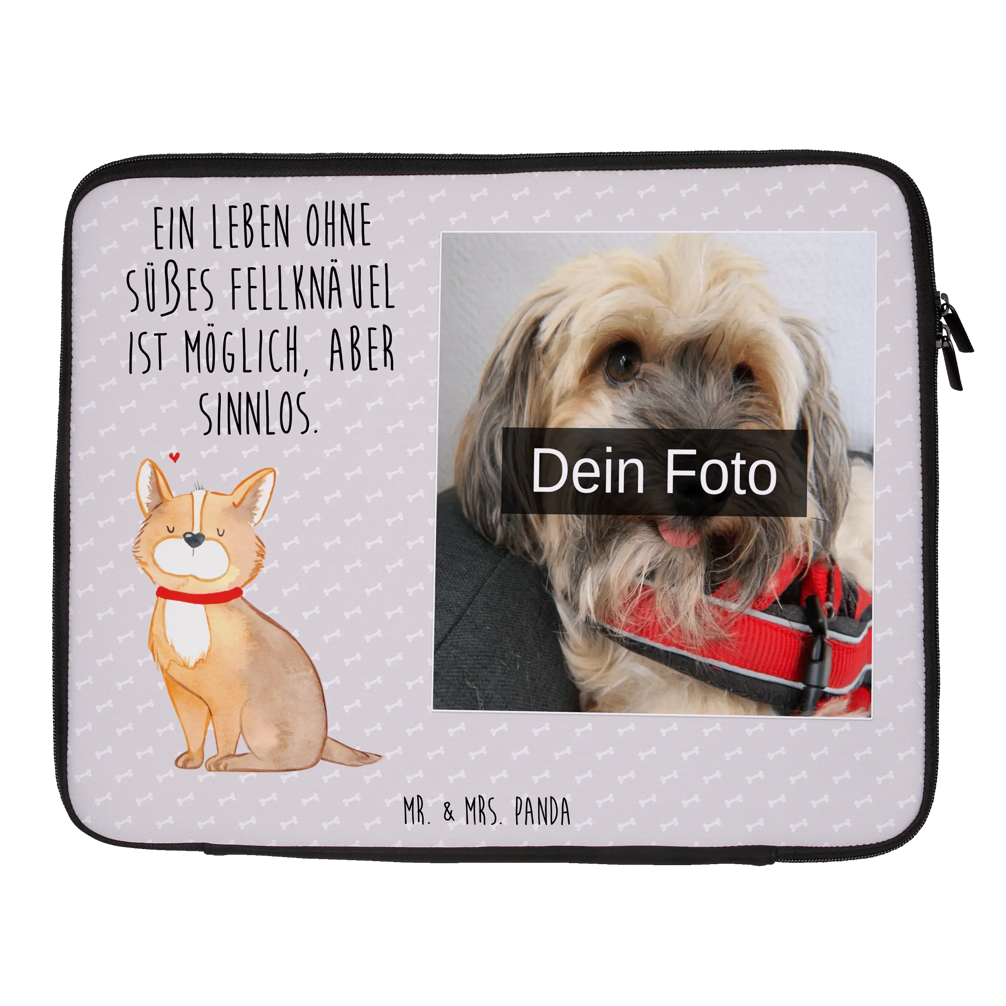Personalisierte Foto Notebook Tasche Hund Glück - 20 x 28 cm - Grau Pastell
