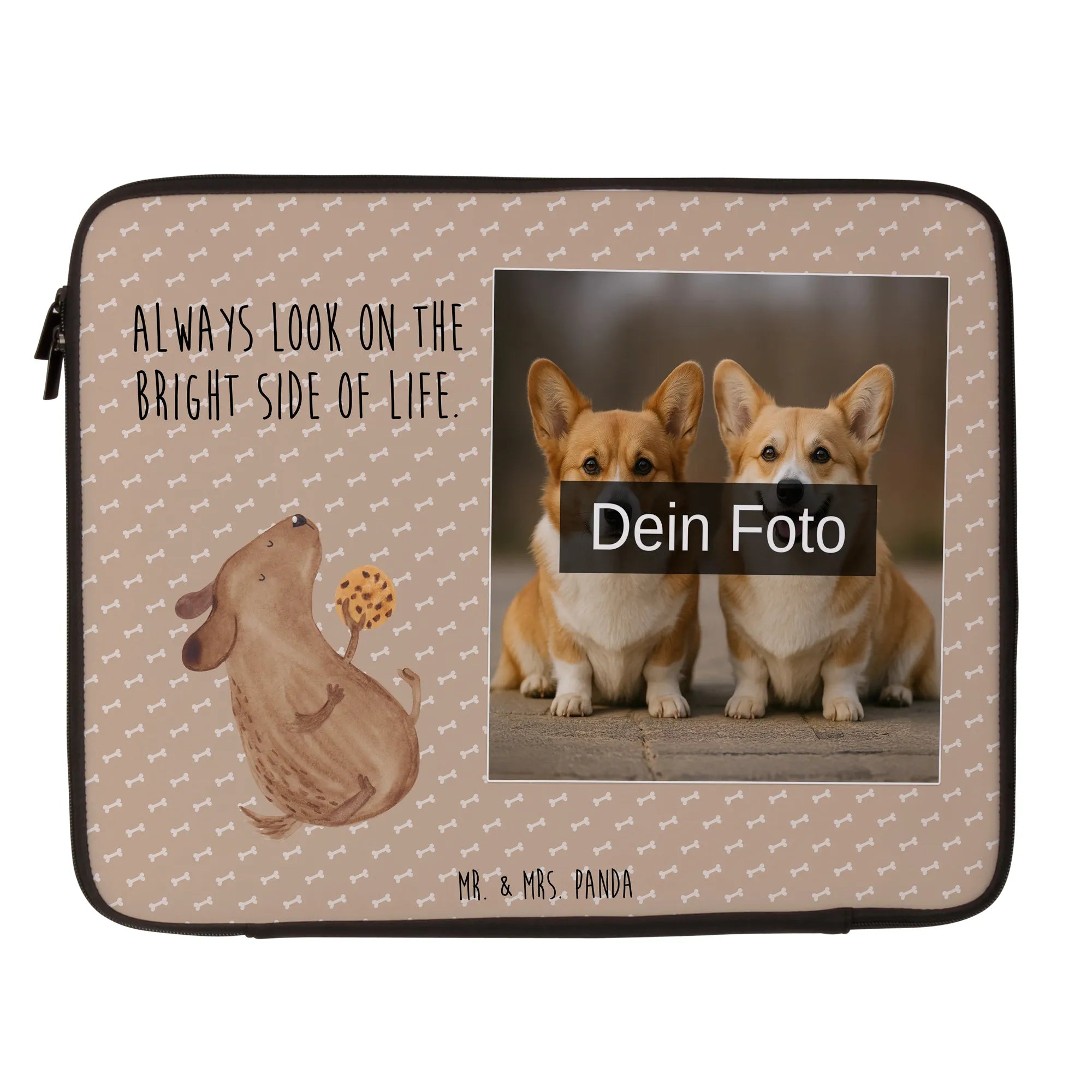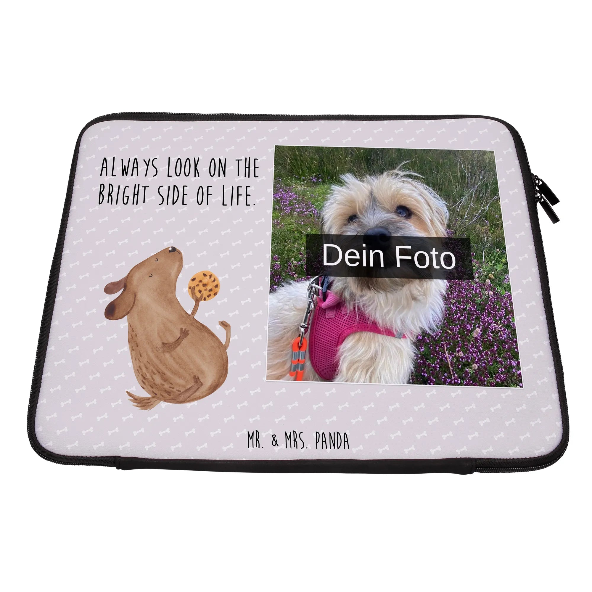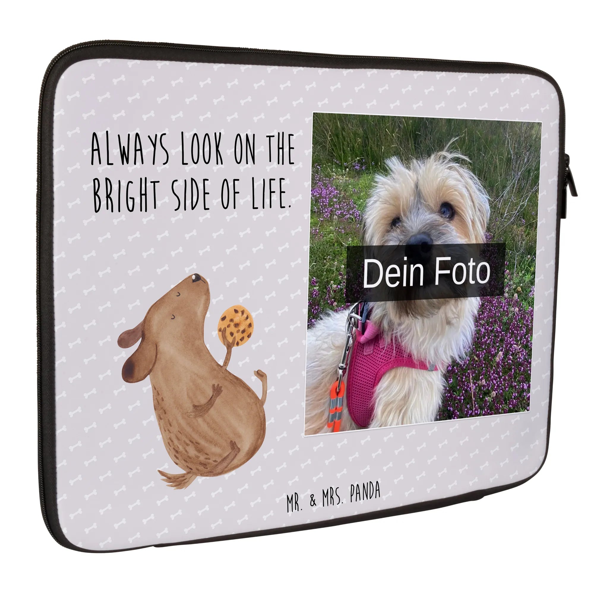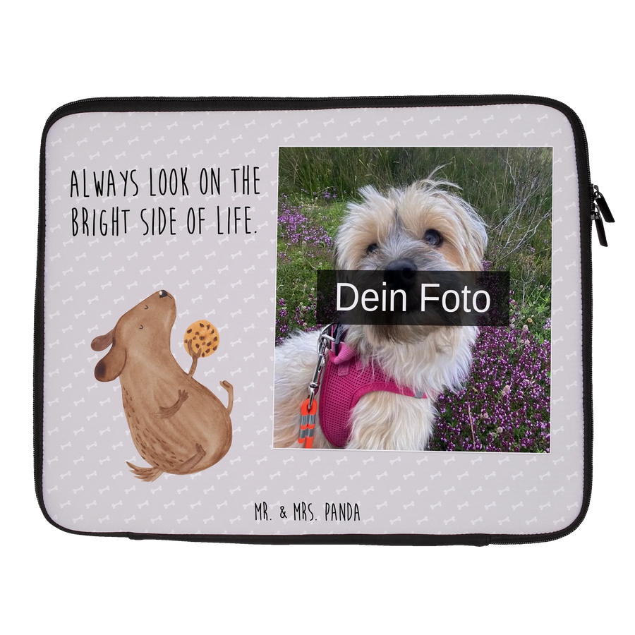 Personalisierte Foto Notebook Tasche Hund Keks - 20 x 28 cm - Grau Pastell