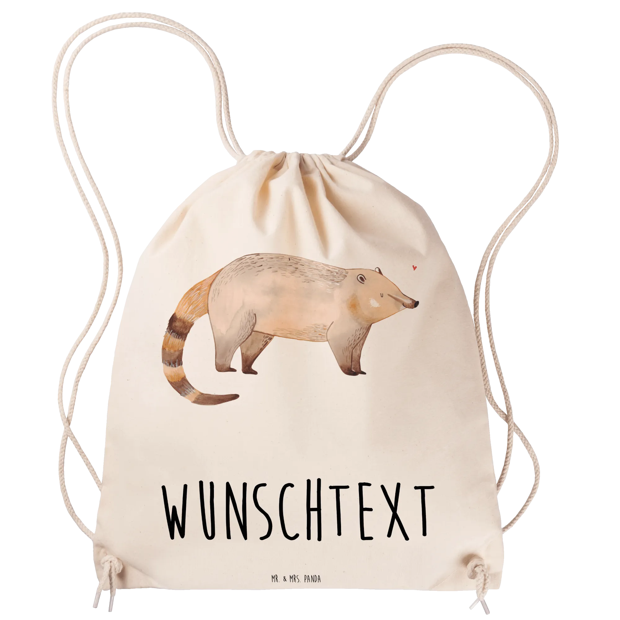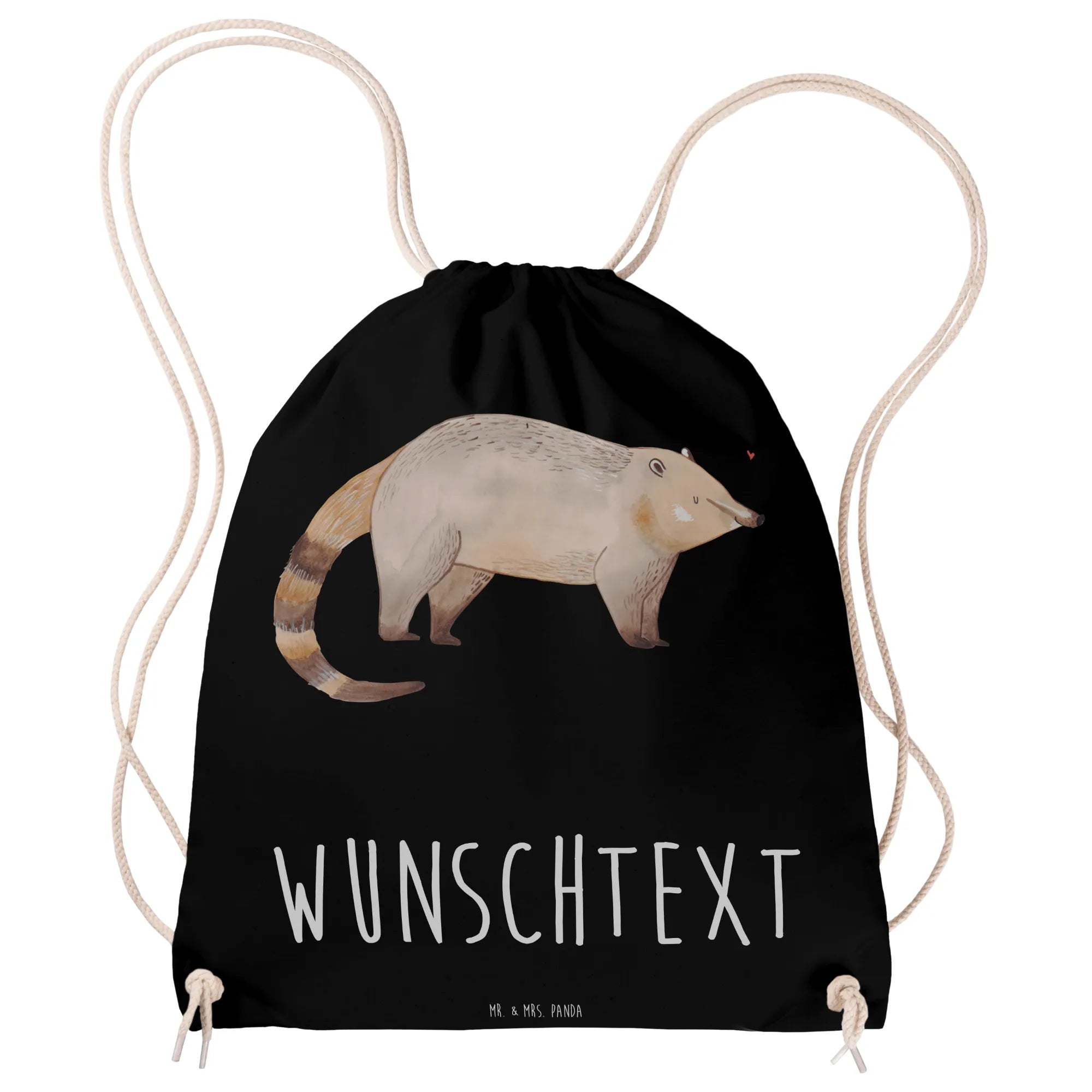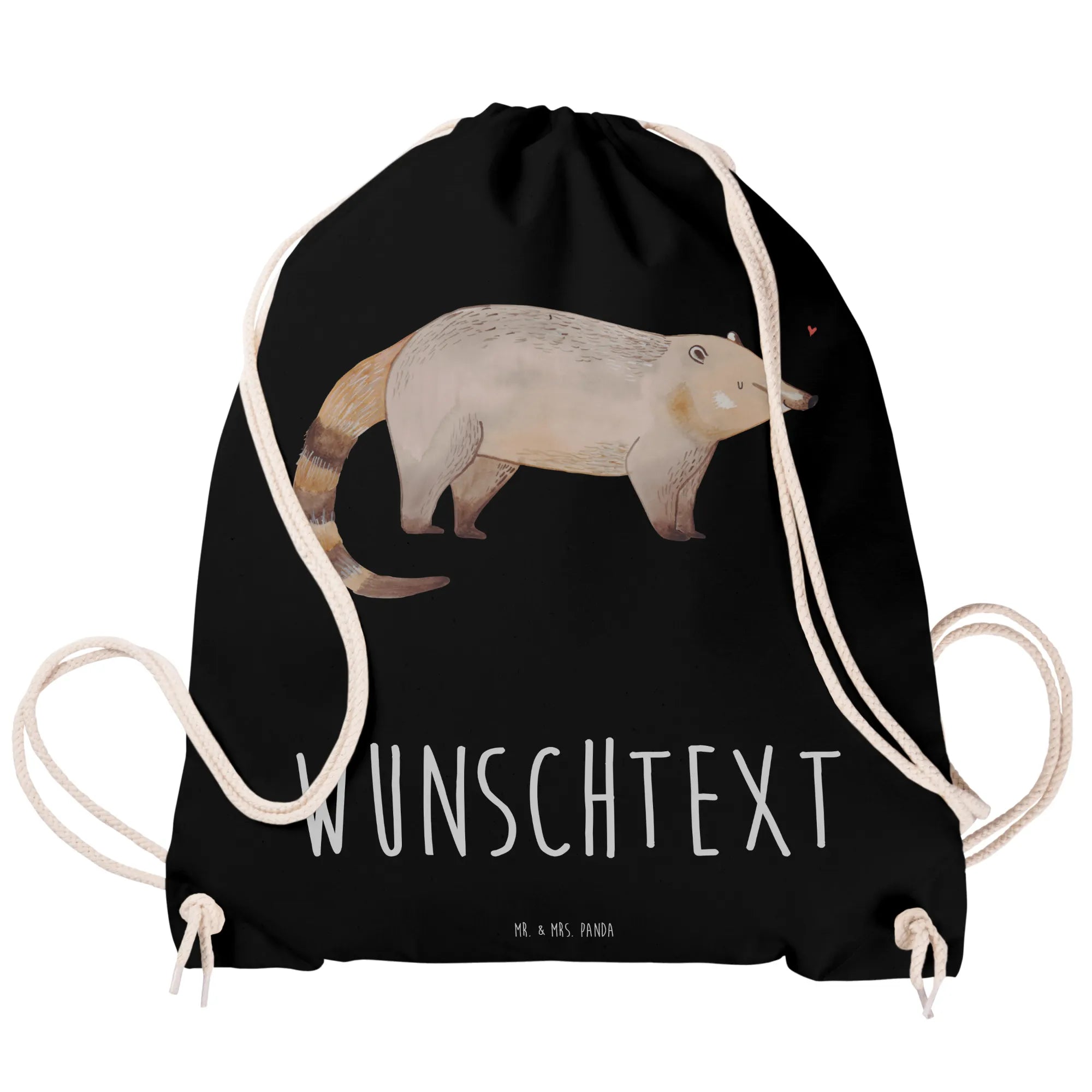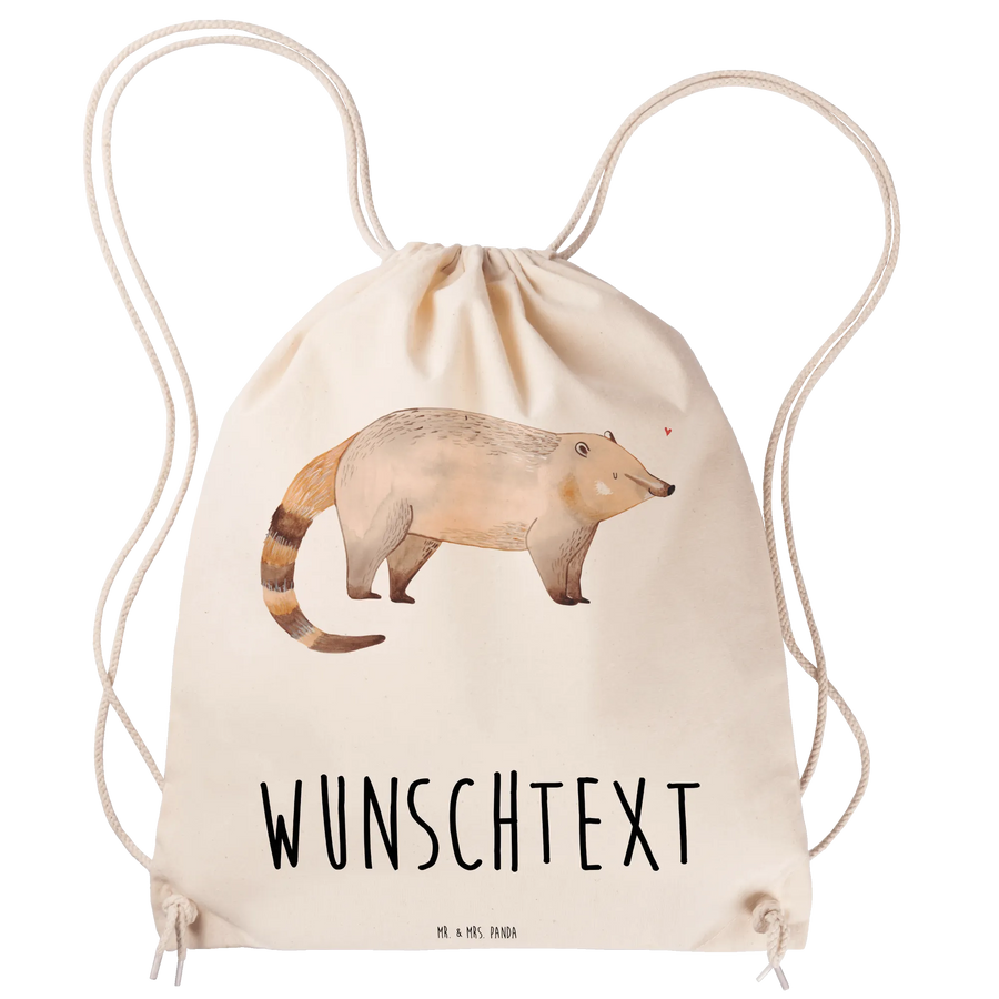 Verschenke Freude, Farbe und eine persönliche Note mit diesem zauberhaften Nasenbär-Sportbeutel von Mr. & Mrs. Panda! 🐾
