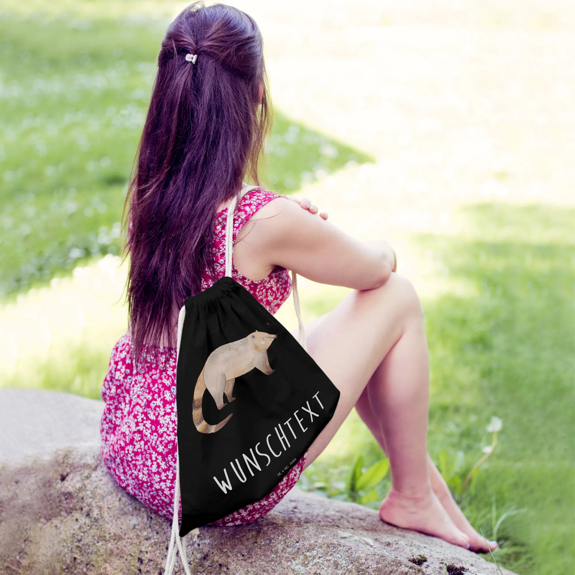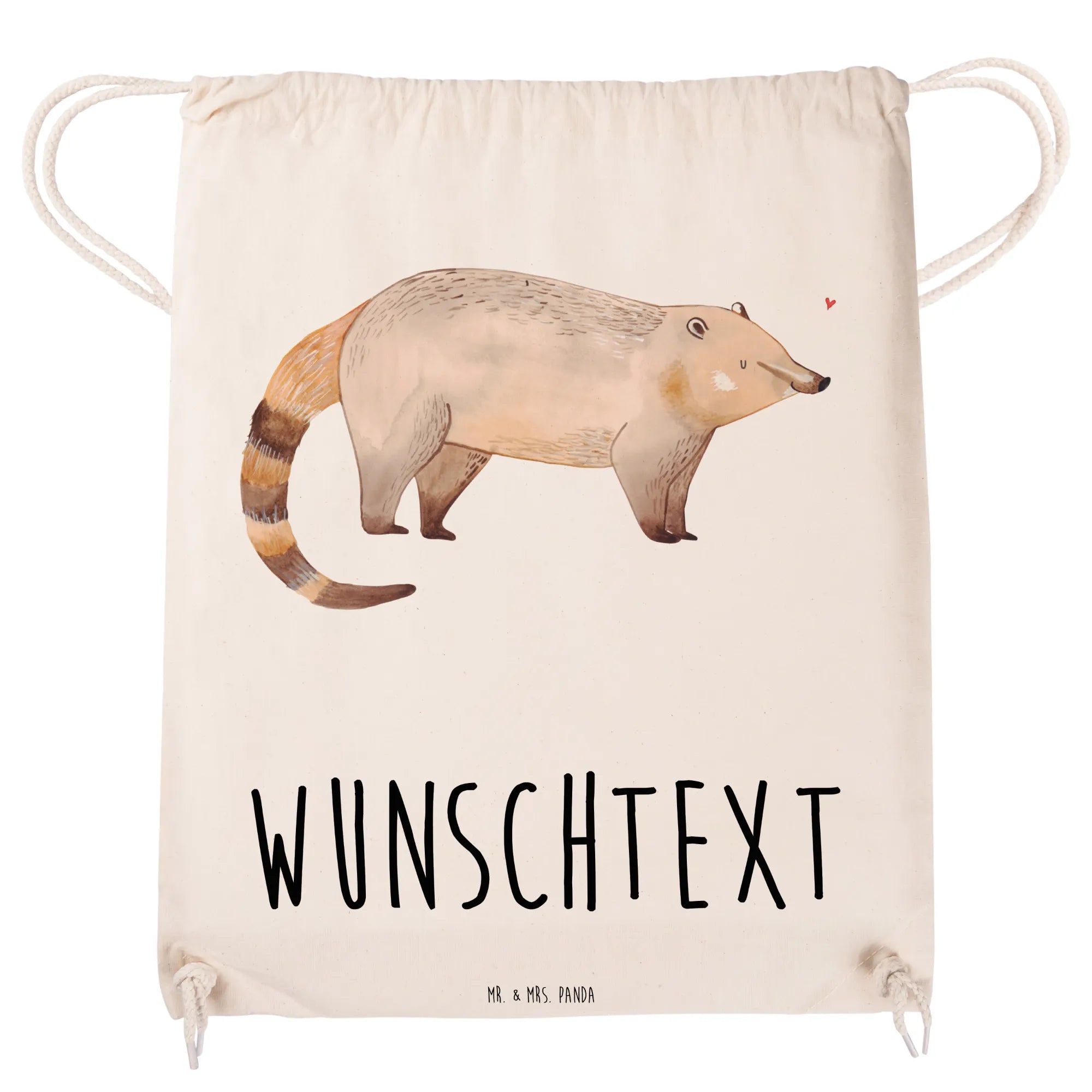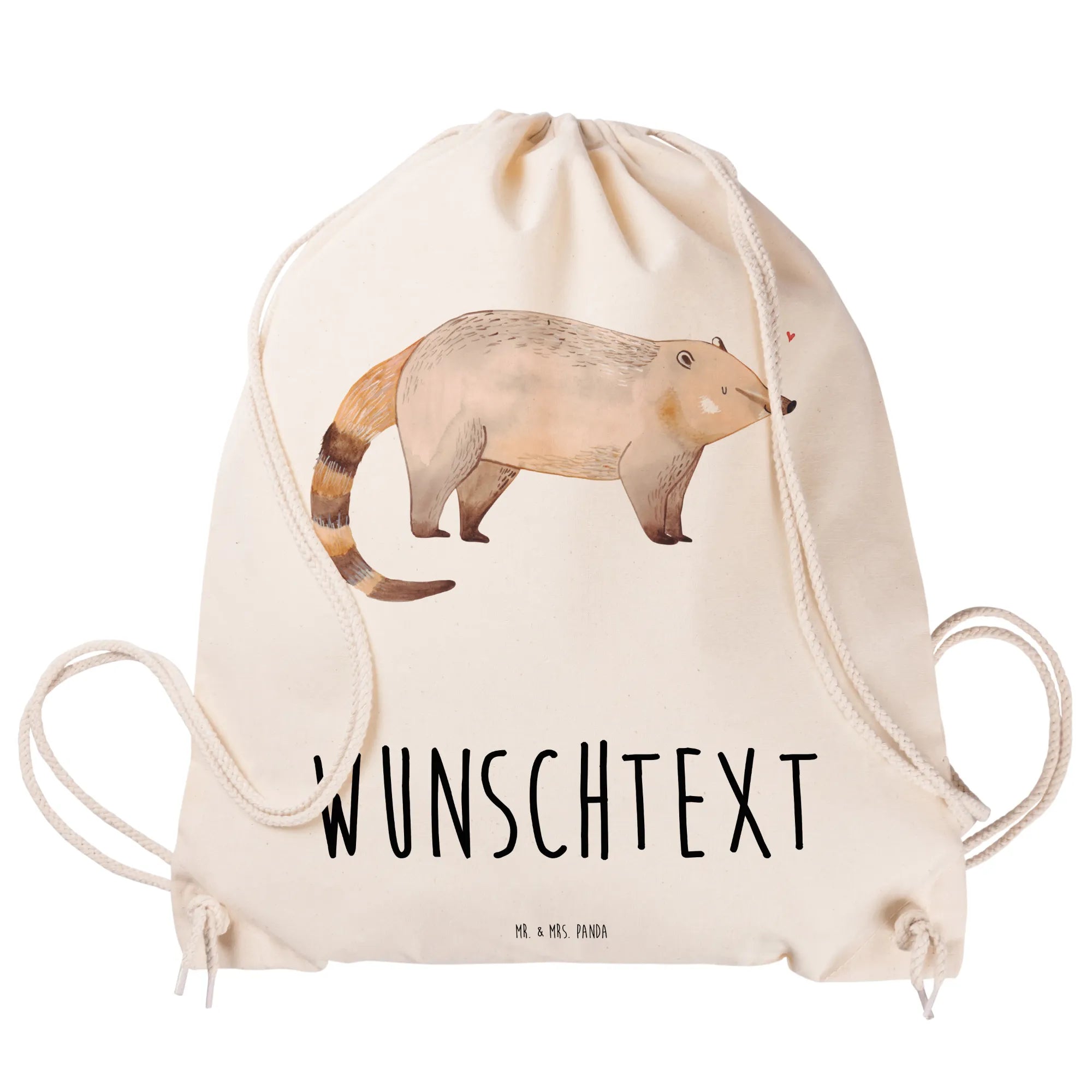 Verschenke Freude, Farbe und eine persönliche Note mit diesem zauberhaften Nasenbär-Sportbeutel von Mr. & Mrs. Panda! 🐾