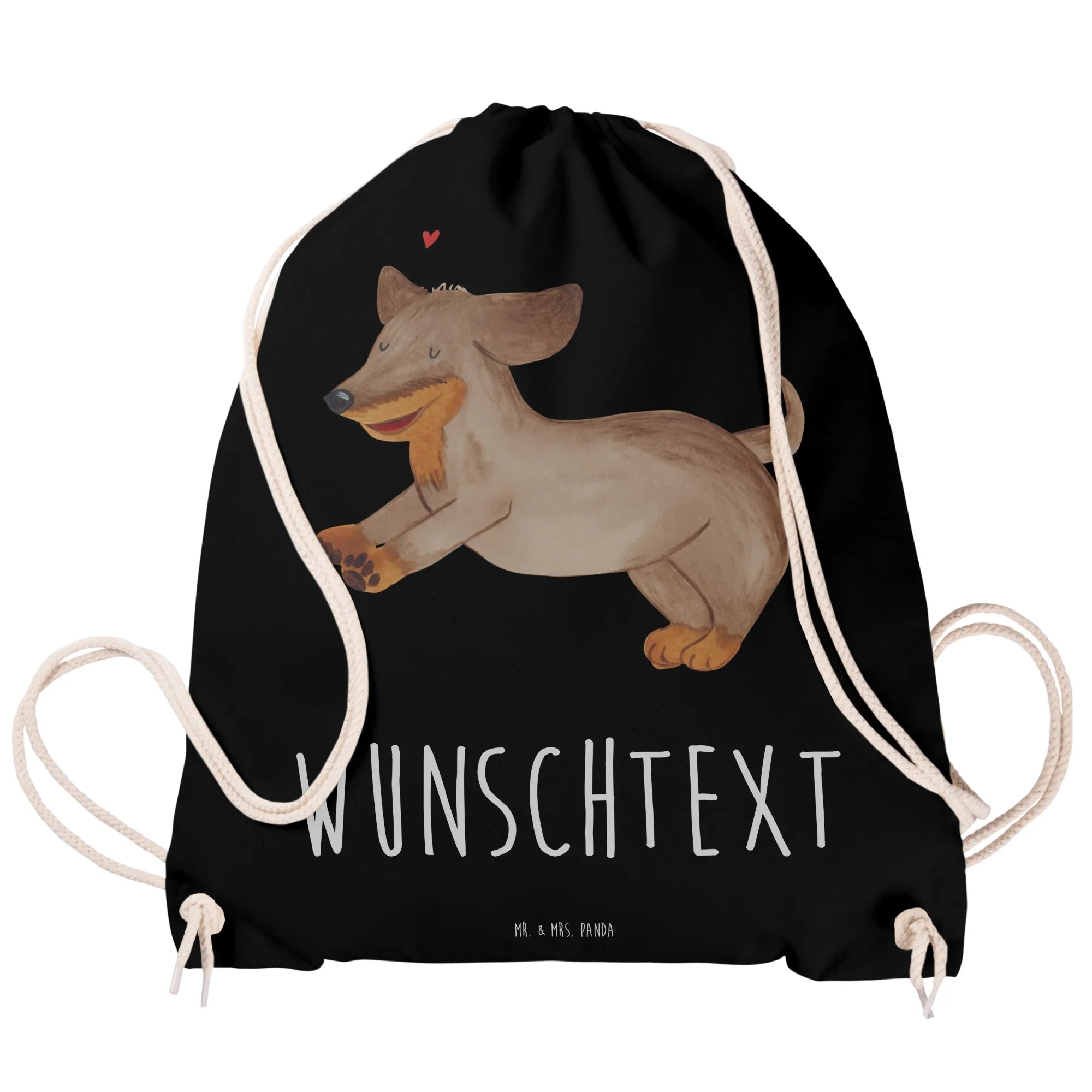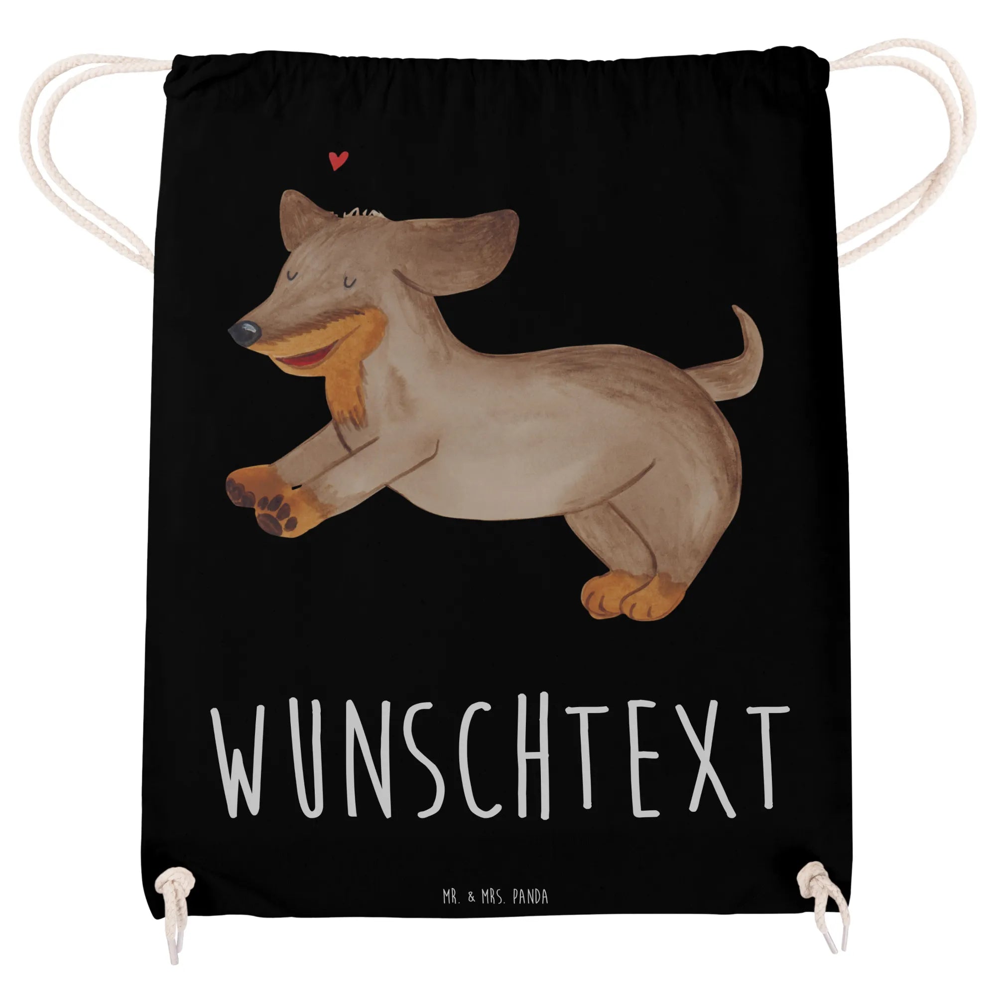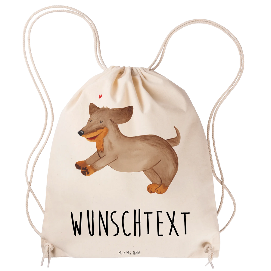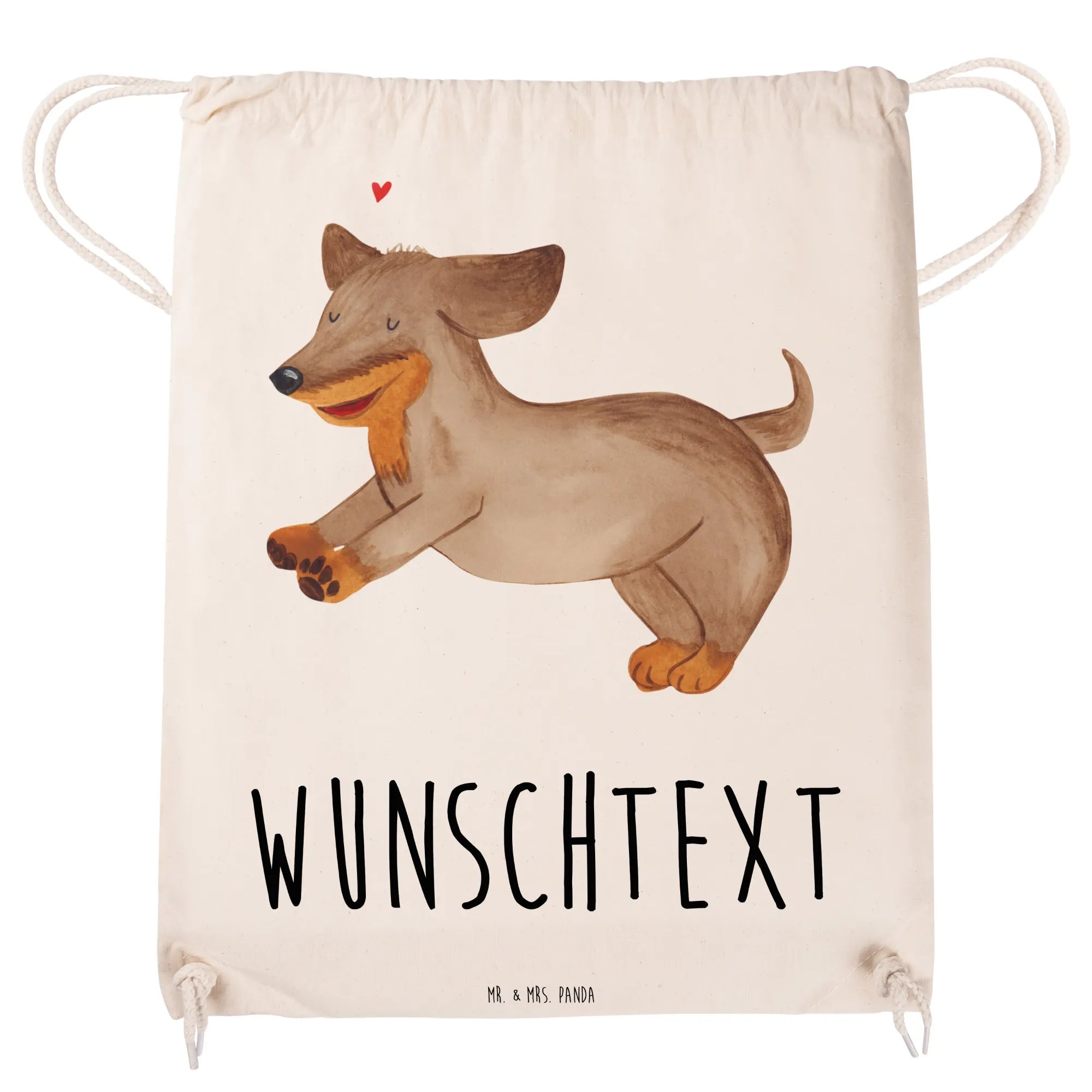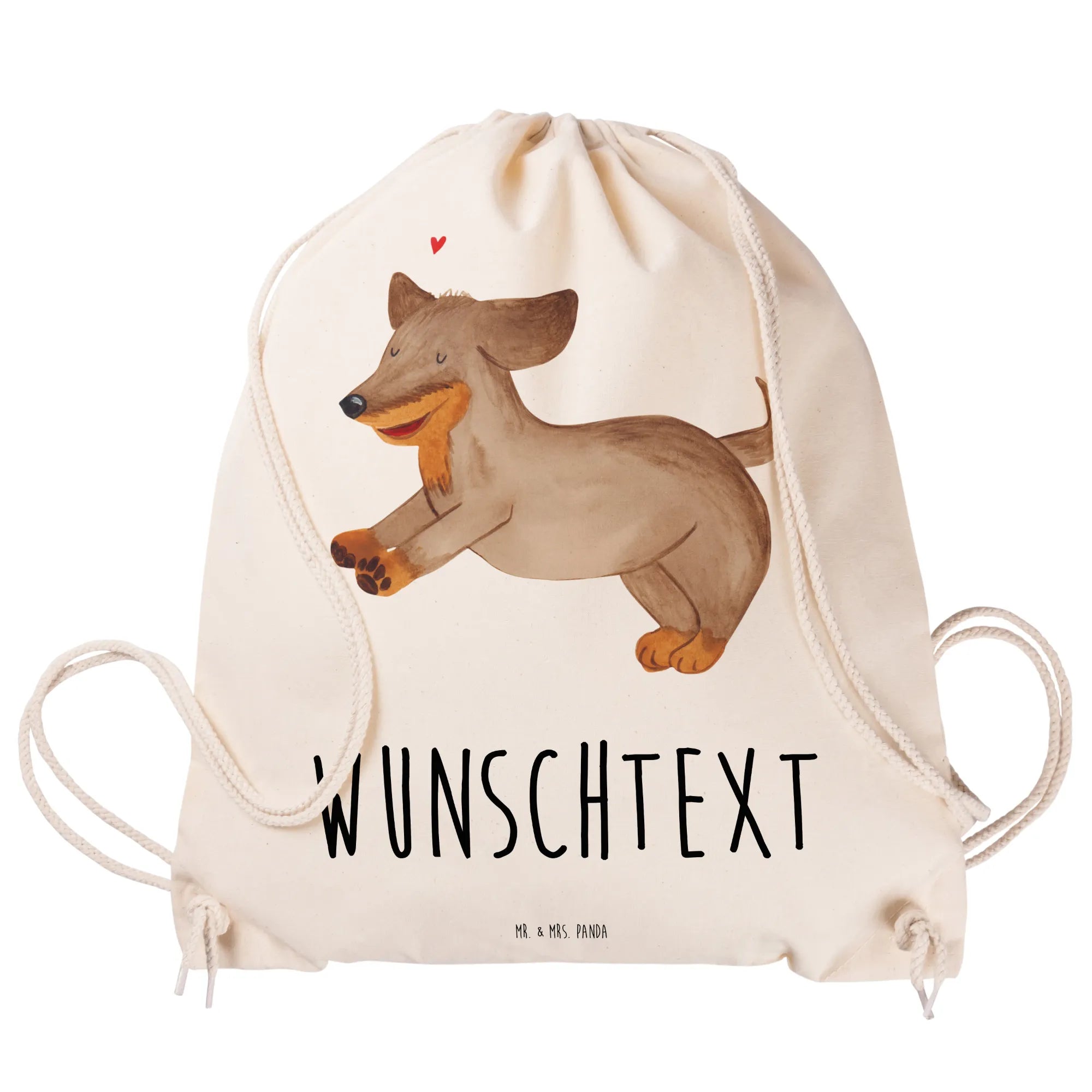Wenn du auf der Suche nach einem ganz besonderen Geschenk für Hundeliebhaber bist, dann ist unser personalisierter Sportbeutel mit dem fröhlichen Dackelmotiv genau das richtige für dich! Dieser entzückende Sportbeutel von Mr. & Mrs. Panda ist mehr als nur ein einfacher Turnbeutel – er ist eine perfekte Kombination aus Funktionalität und persönlichem Flair.