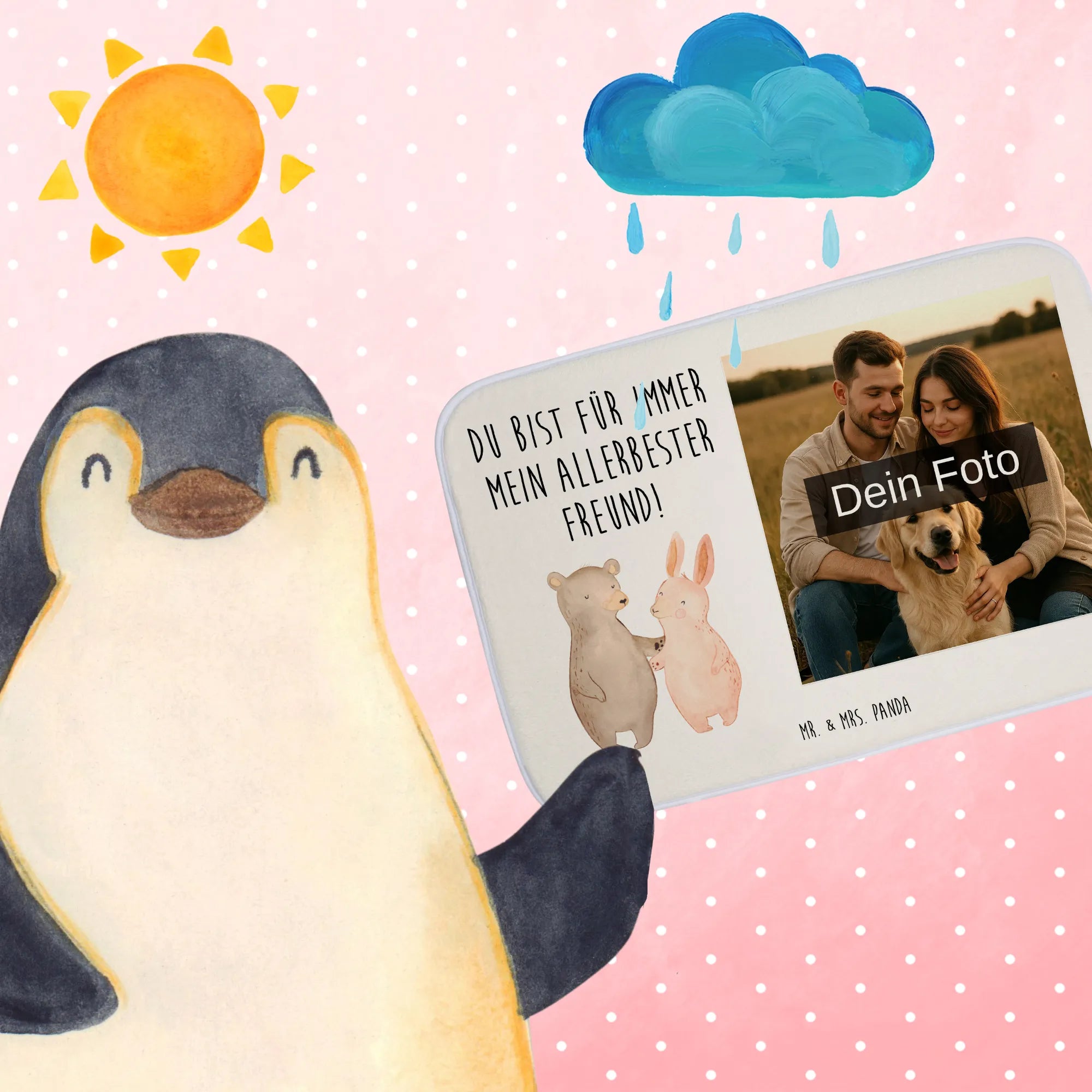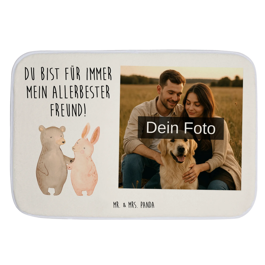 Personalisierte Foto Badematte Bär und Hase Umarmen