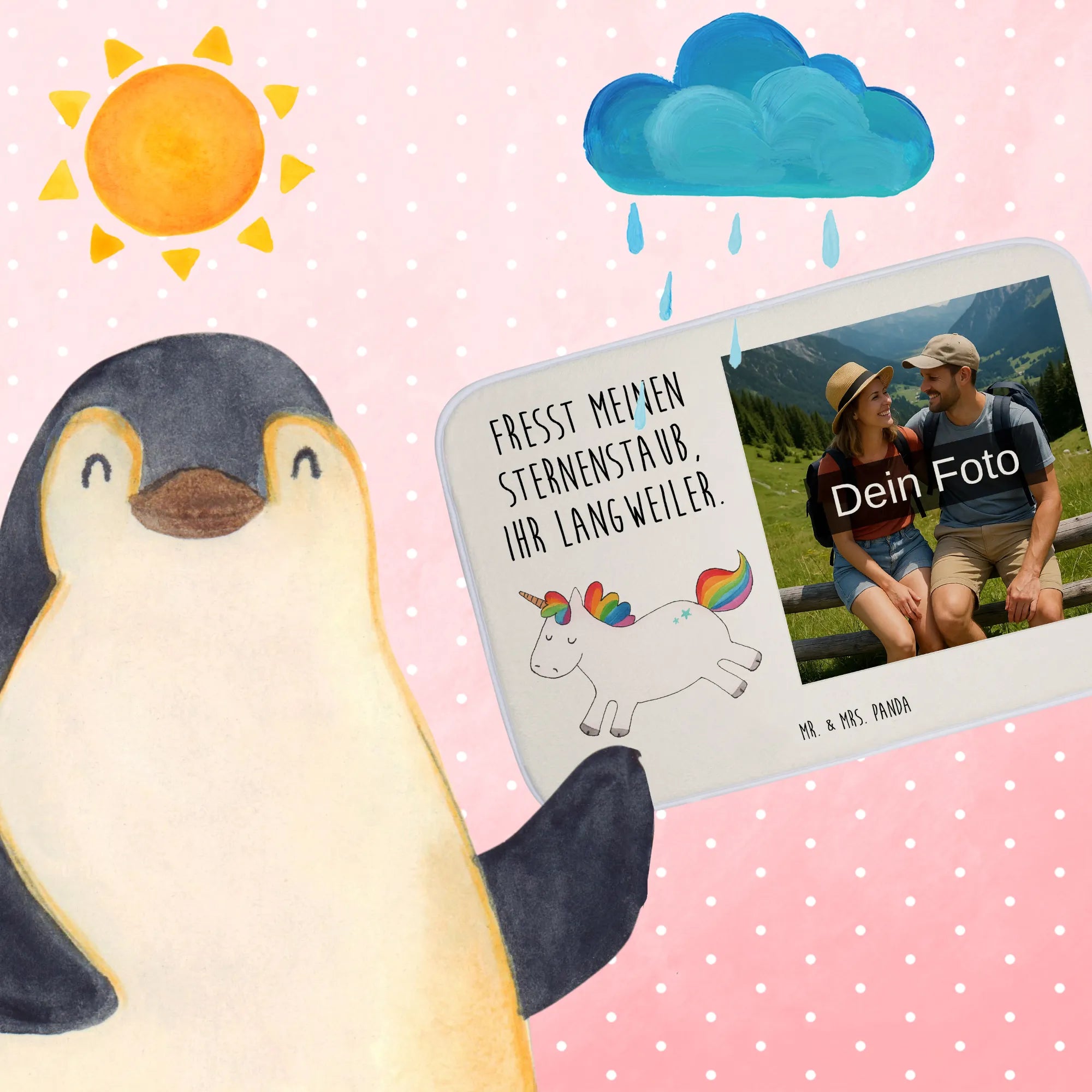 Personalisierte Foto Badematte Einhorn Happy