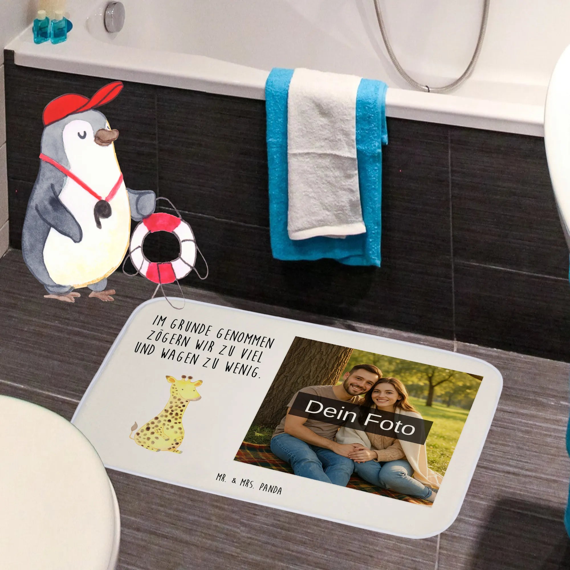 Personalisierte Foto Badematte Giraffe Zufrieden