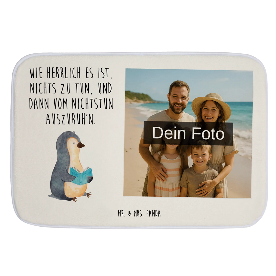 Personalisierte Foto Badematte Pinguin Buch