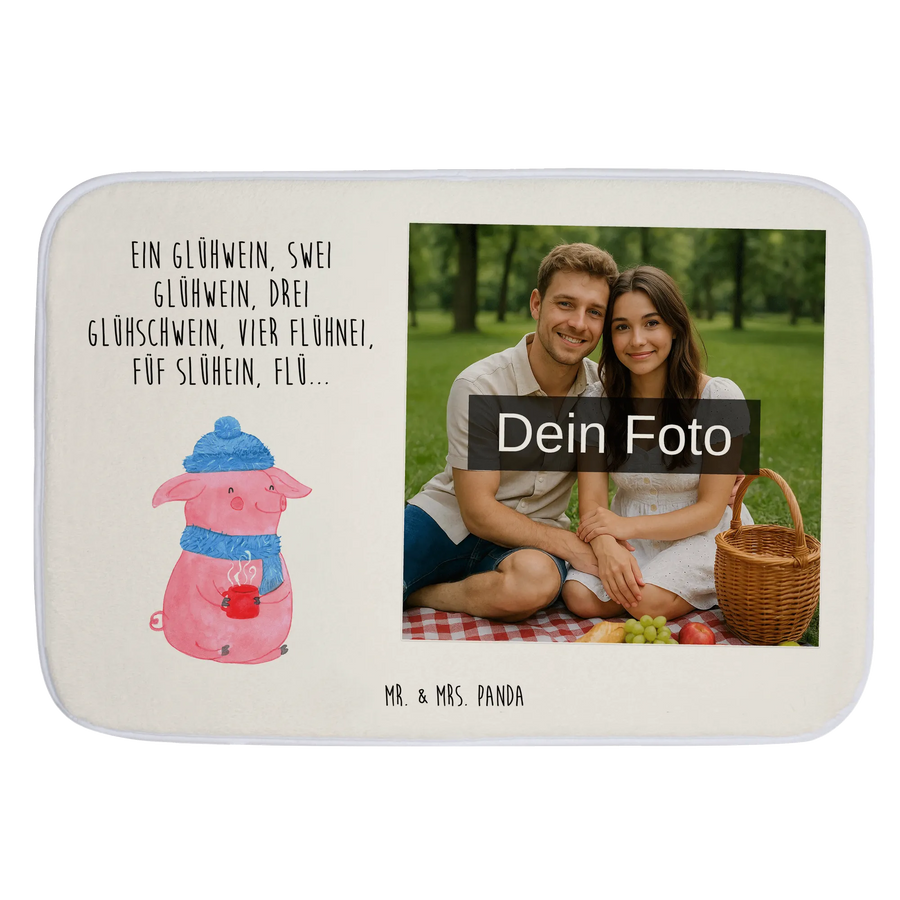 Personalisierte Foto Badematte Schweinchen Glühwein