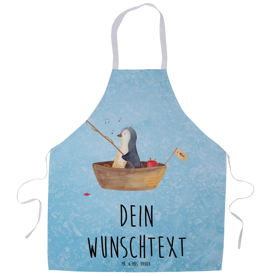 Spersonalizowany fartuch kuchenny pingwin łódka wędkarska - Eisblau