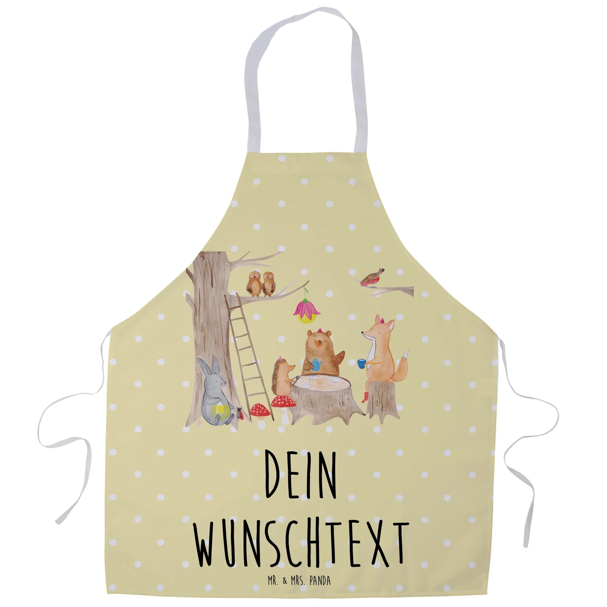 Entdecke die zauberhafte Welt der personalisierten Kochschürze mit dem süßen Motiv der Waldtiere Picknick von Mr. & Mrs. Panda! Diese hochwertige Schürze ist nicht nur praktisch, sondern verleiht deiner Küche auch einen Hauch von magischer Natur. Stell dir vor, wie die niedlichen Füchse, das fröhliche Eichhörnchen und die putzigen Hasen dich beim Kochen und Backen begleiten.
