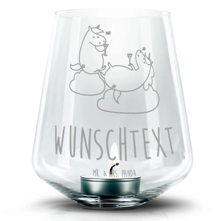 Spersonalizowany grawerowany świecznik jednorożec szampan – Mr. & Mrs. Panda