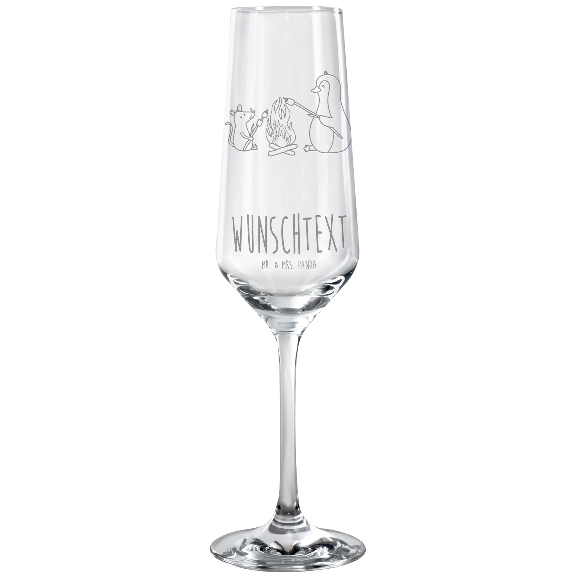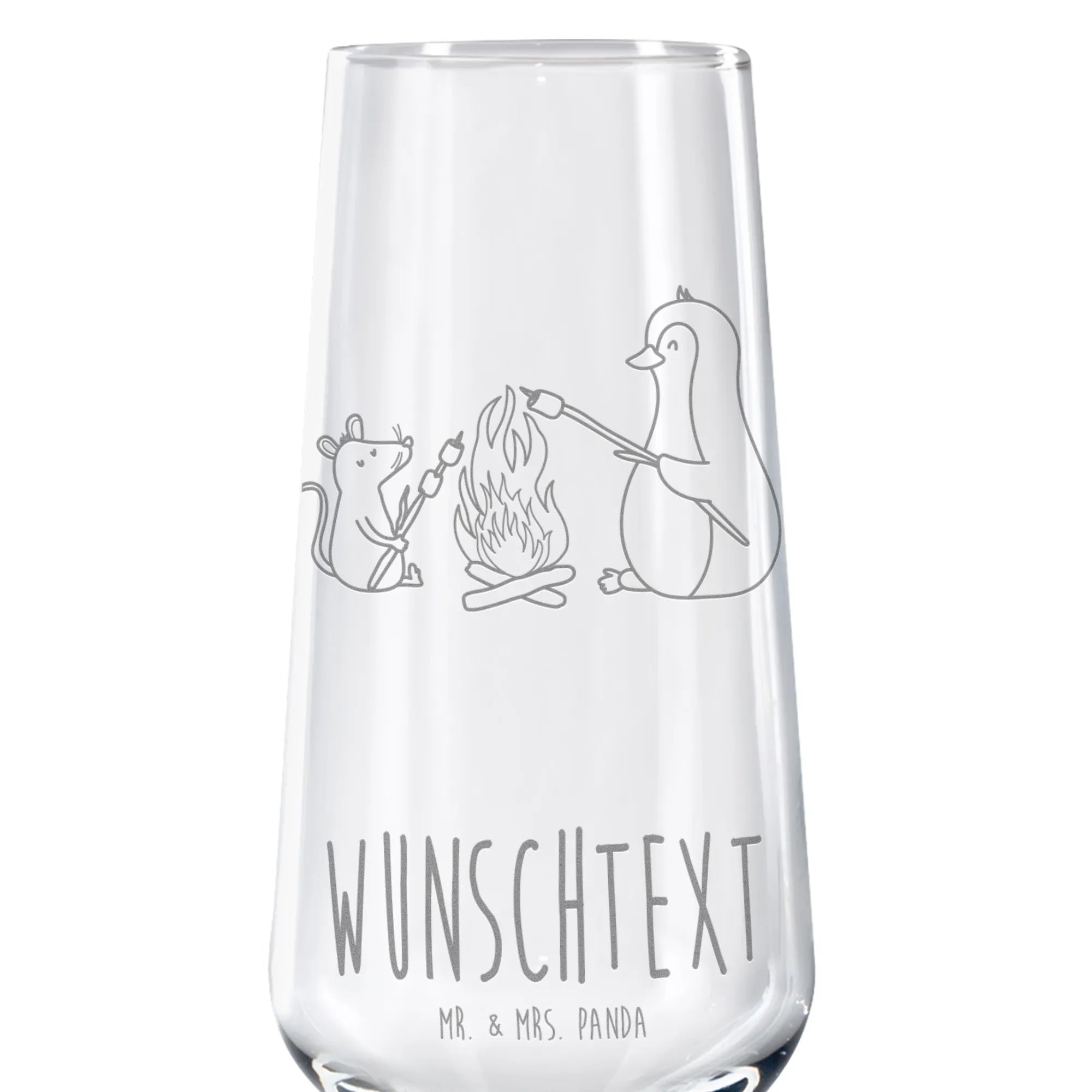 Spersonalizowany kieliszek do szampana pingwin ognisko