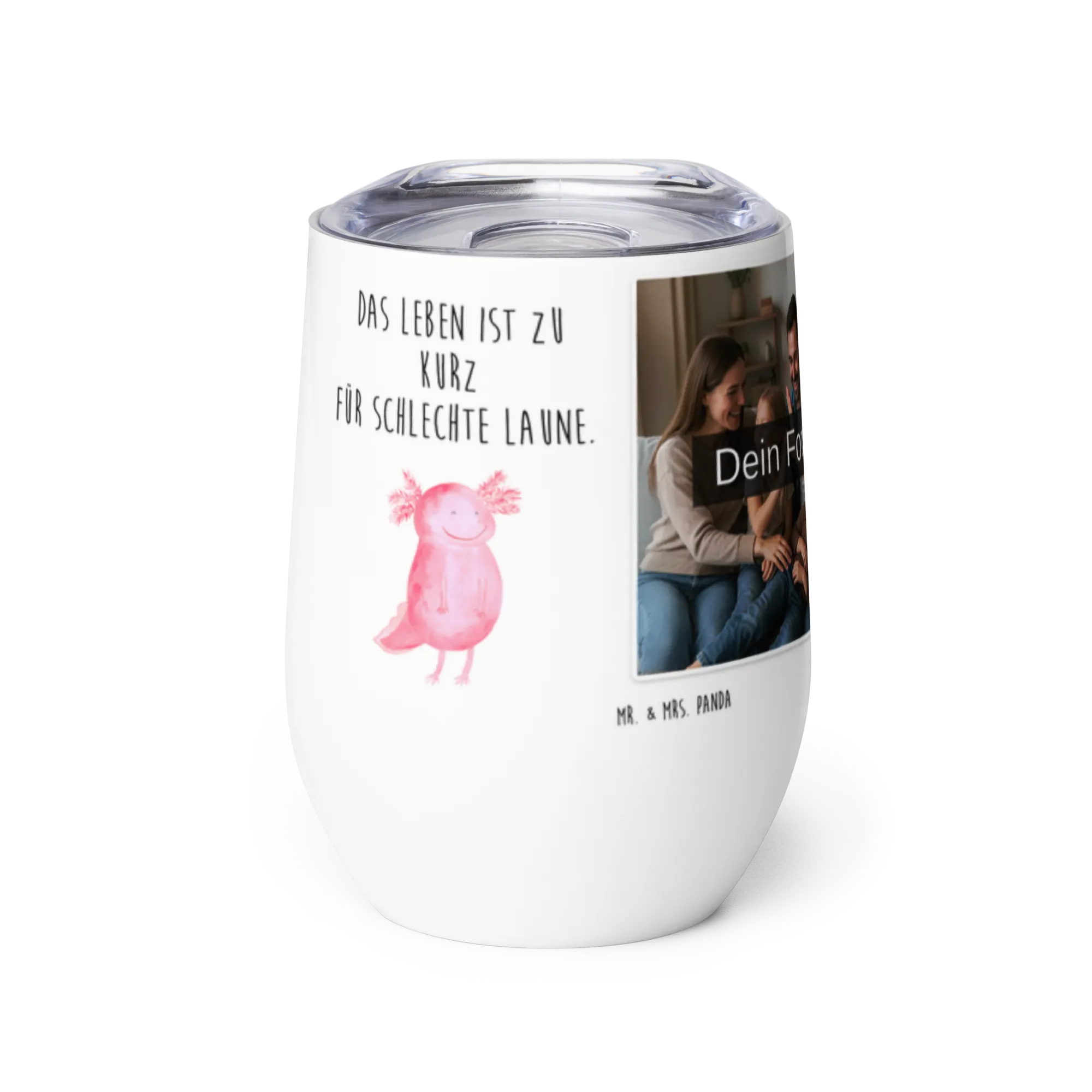 Spersonalizowany kubek do wina ze zdjęciem Aksolotl Szczęśliwy