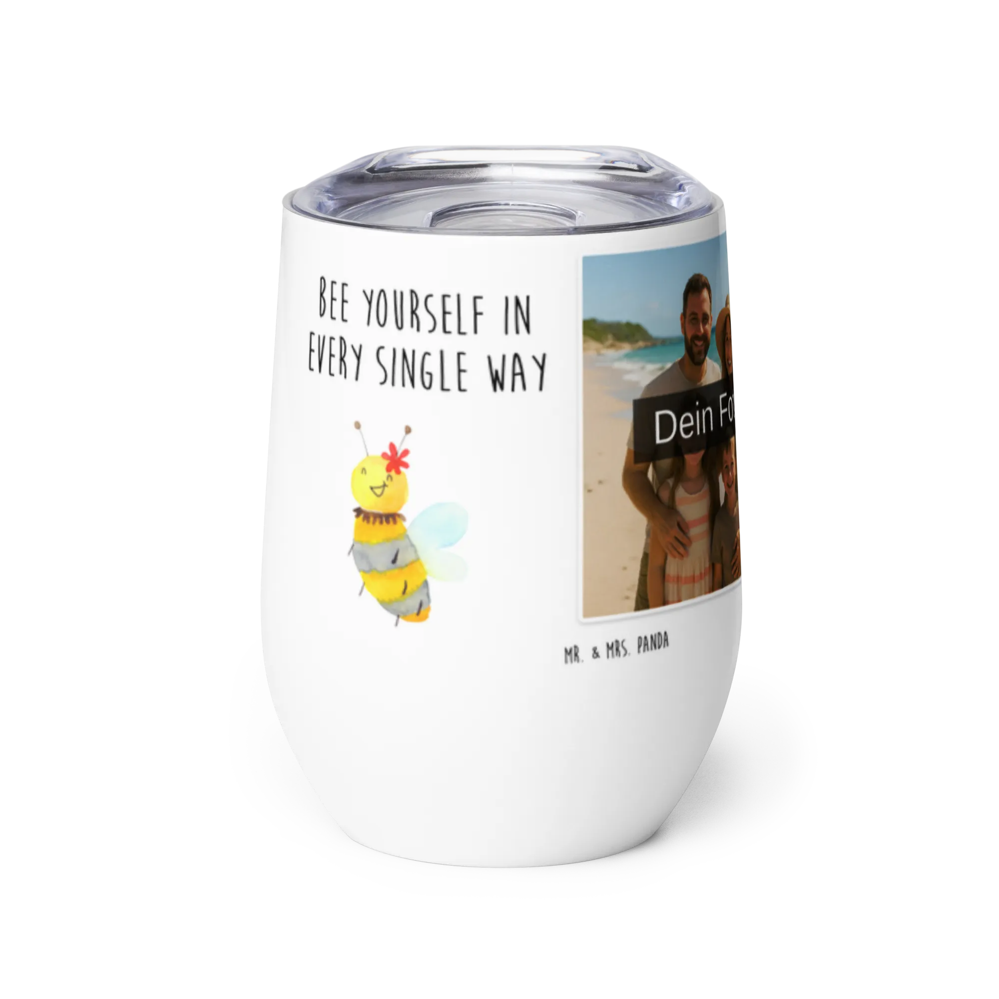 Spersonalizowany kubek do wina ze zdjęciem pszczoła kwiat