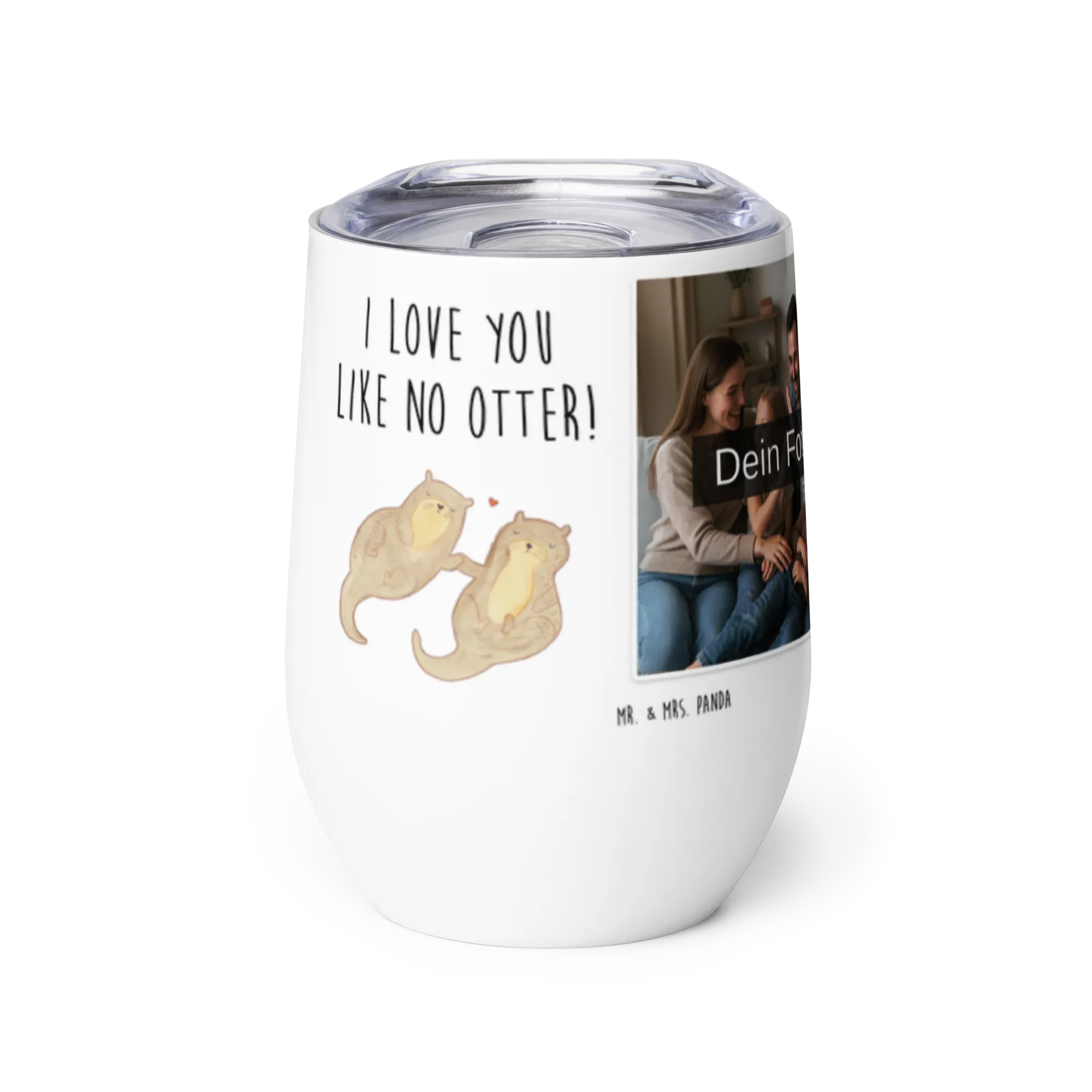 Spersonalizowany kubek do wina ze zdjęciem wydra trzymać się za ręce
