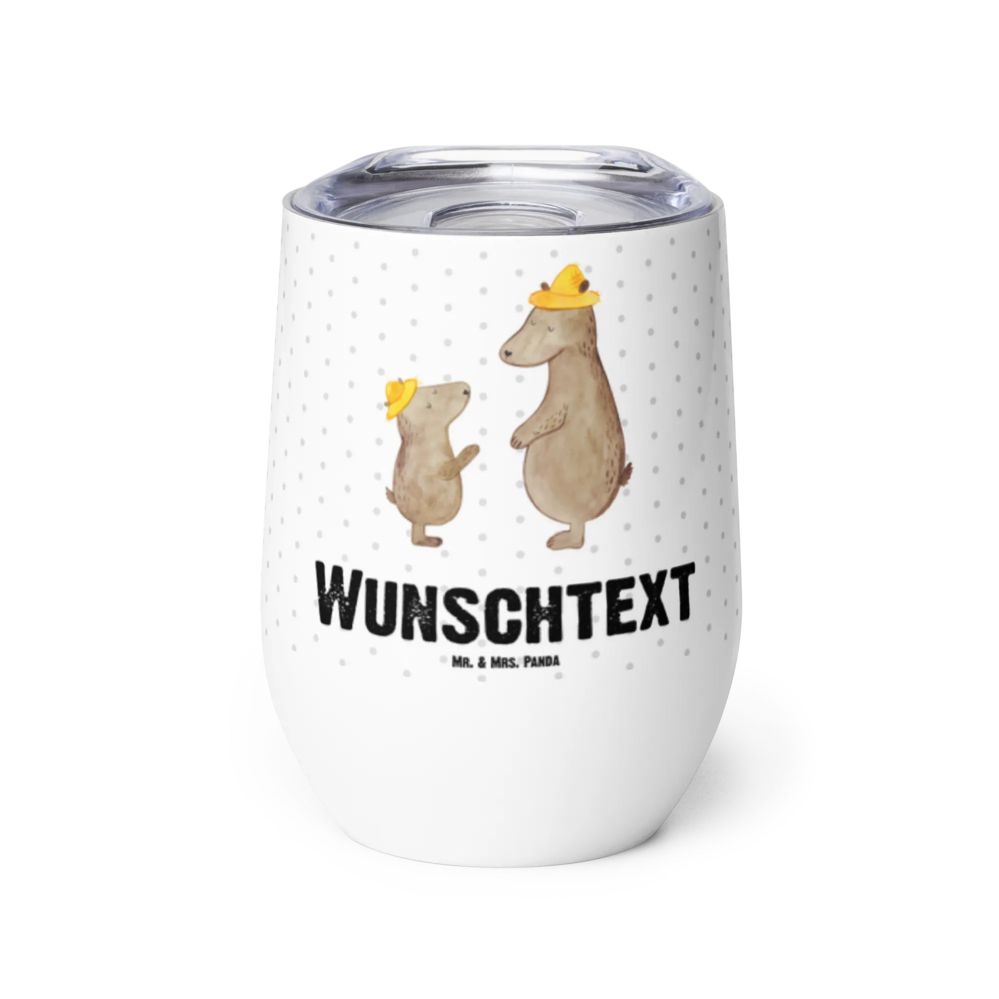 Entdecke den perfekten personalisierten Weinbecher mit dem zauberhaften Motiv der Bären mit Hut aus der Familienkollektion von Mr. & Mrs. Panda!