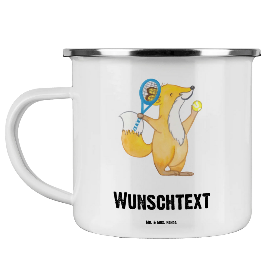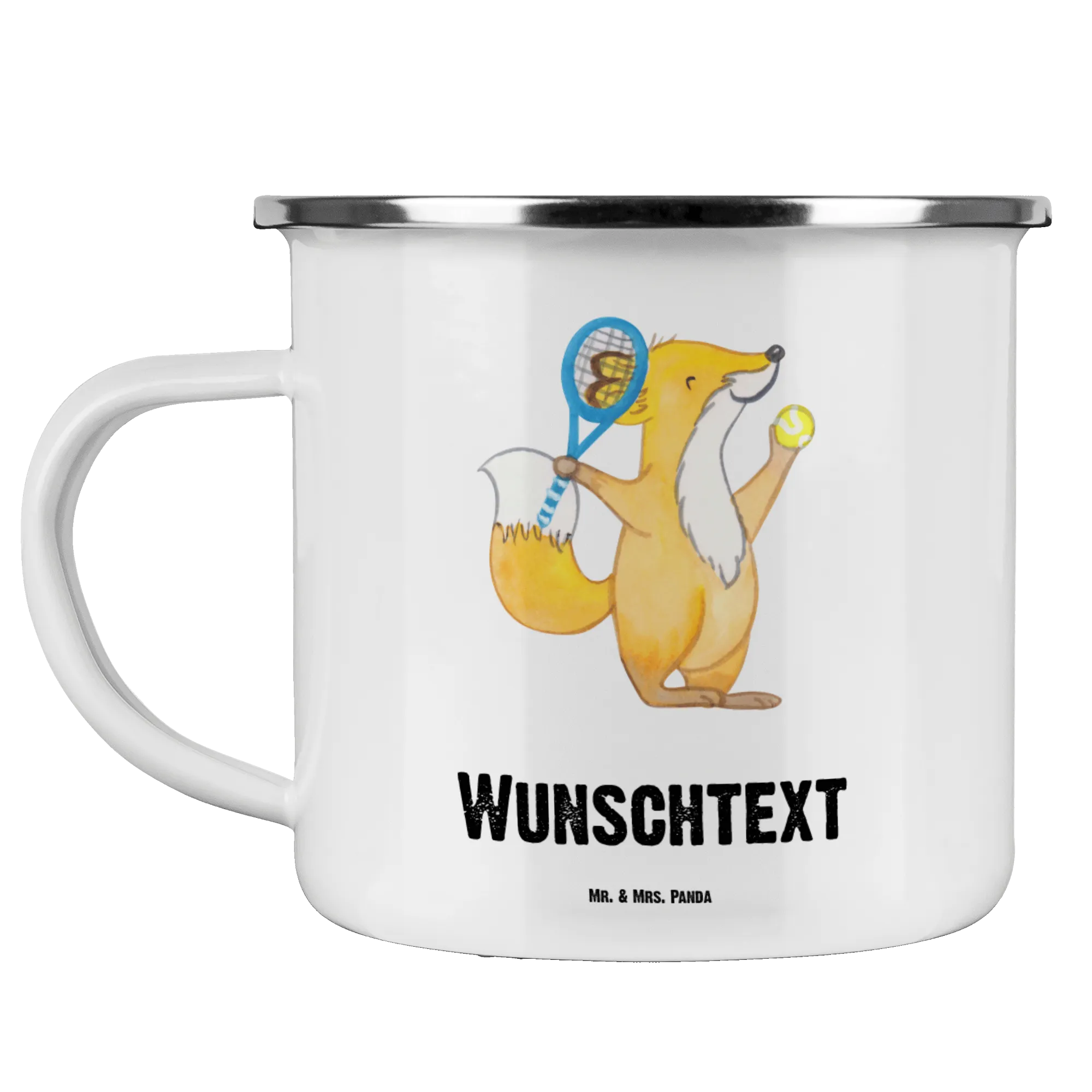 Spersonalizowany kubek emaliowany lis grać w tenisa