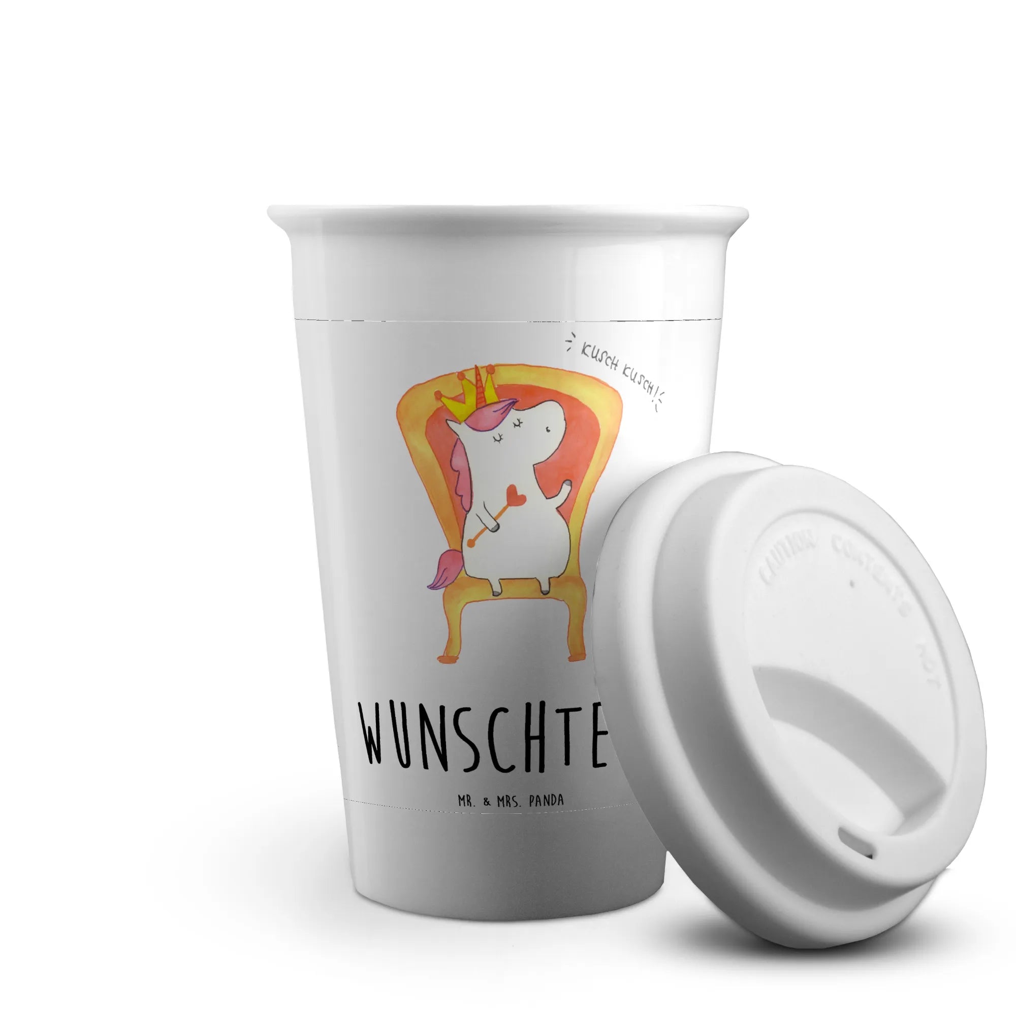 Bist du bereit für den perfekten Begleiter für unterwegs? Unser personalisierter To Go Becher mit dem wunderschönen Einhorn König Motiv aus der Einhorn-Kollektion ist genau das Richtige!
