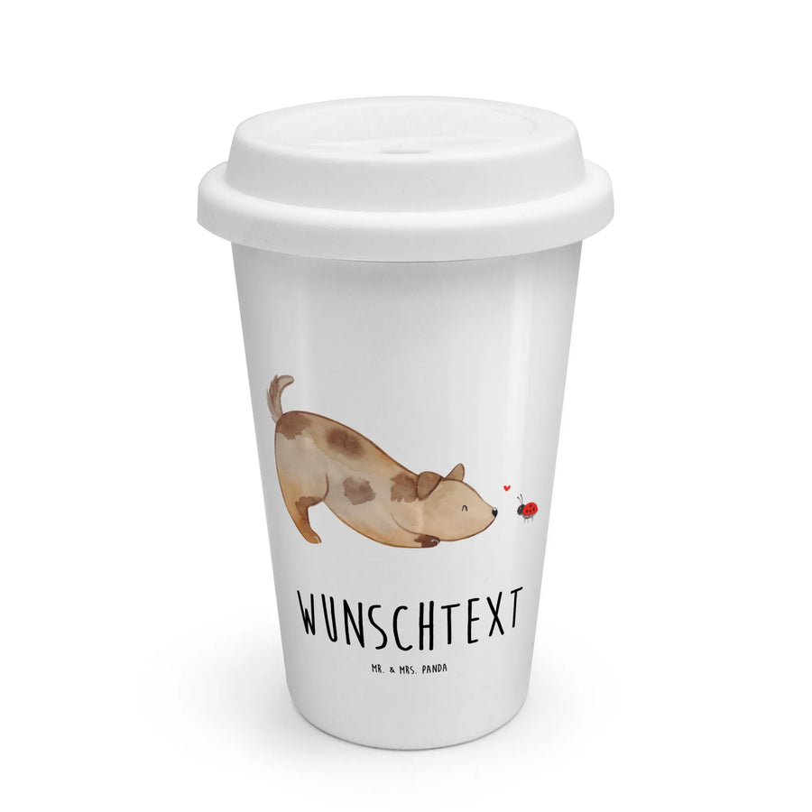 Bist du auf der Suche nach dem perfekten Geschenk für einen Hundeliebhaber oder einfach für dich selbst? Dann ist der personalisierte To Go Becher mit niedlichem Hund-Marienschen-Motiv von Mr. & Mrs. Panda genau das Richtige!