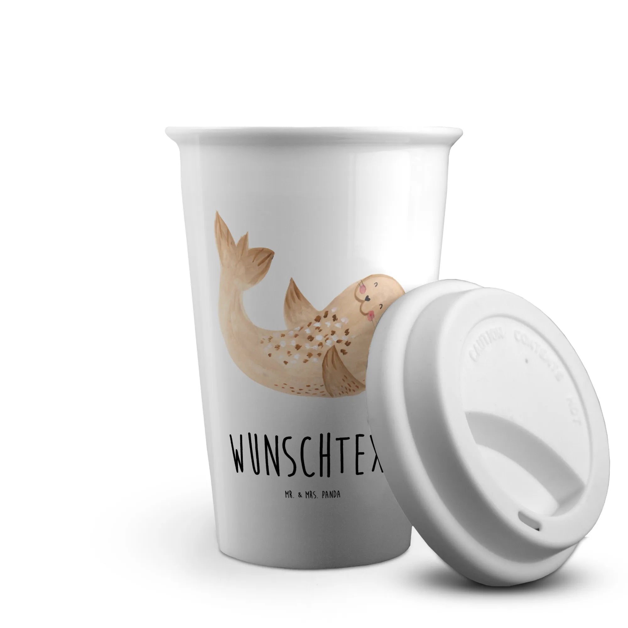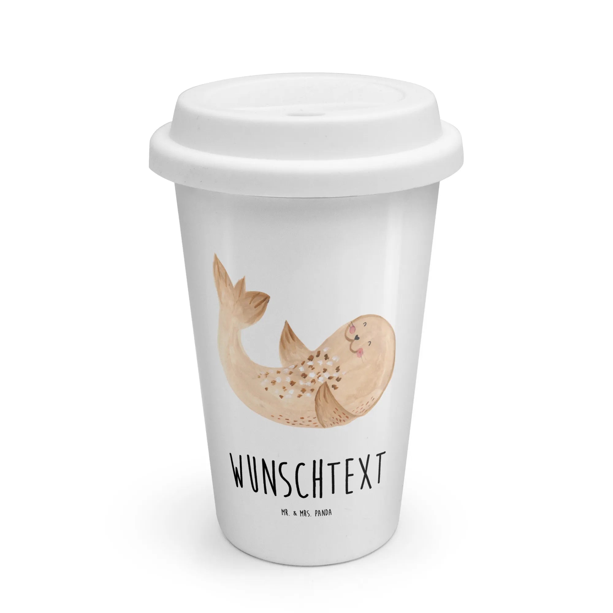 Personalisierter To Go Becher Robbe Liegen – Mr. & Mrs. Panda