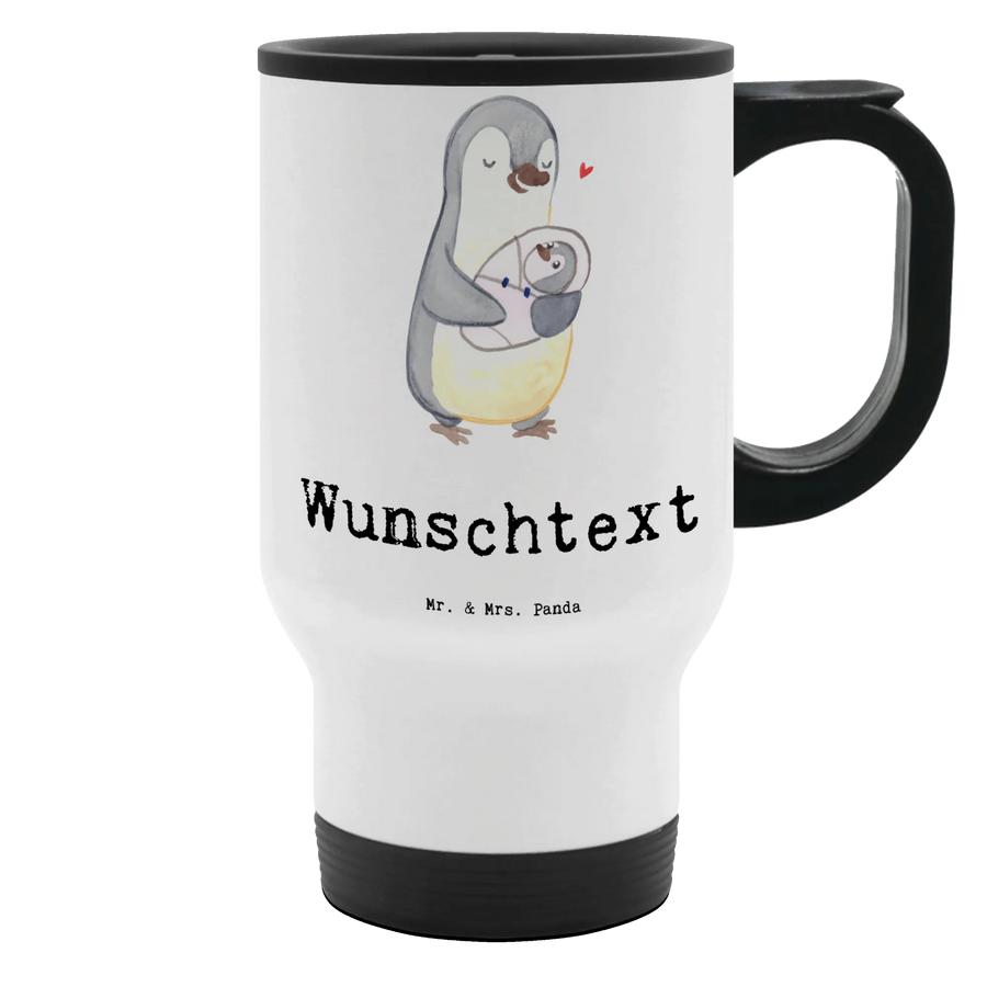 Hergestellt aus hochwertigem Edelstahl und Kunststoff, bietet er eine Füllmenge von 390 ml und ist ideal für Heißgetränke wie Kaffee oder Tee. Die robuste und isolierende Bauweise sorgt dafür, dass Dein Getränk lange warm bleibt. Das besondere Design mit einem süßen Pinguin, der sein Baby im Arm hält, und der witzige Spruch "Du bist nur ein halber Mensch, wenn du kein Krippenerzieher bist." machen diesen Becher zu einem absoluten Hingucker.