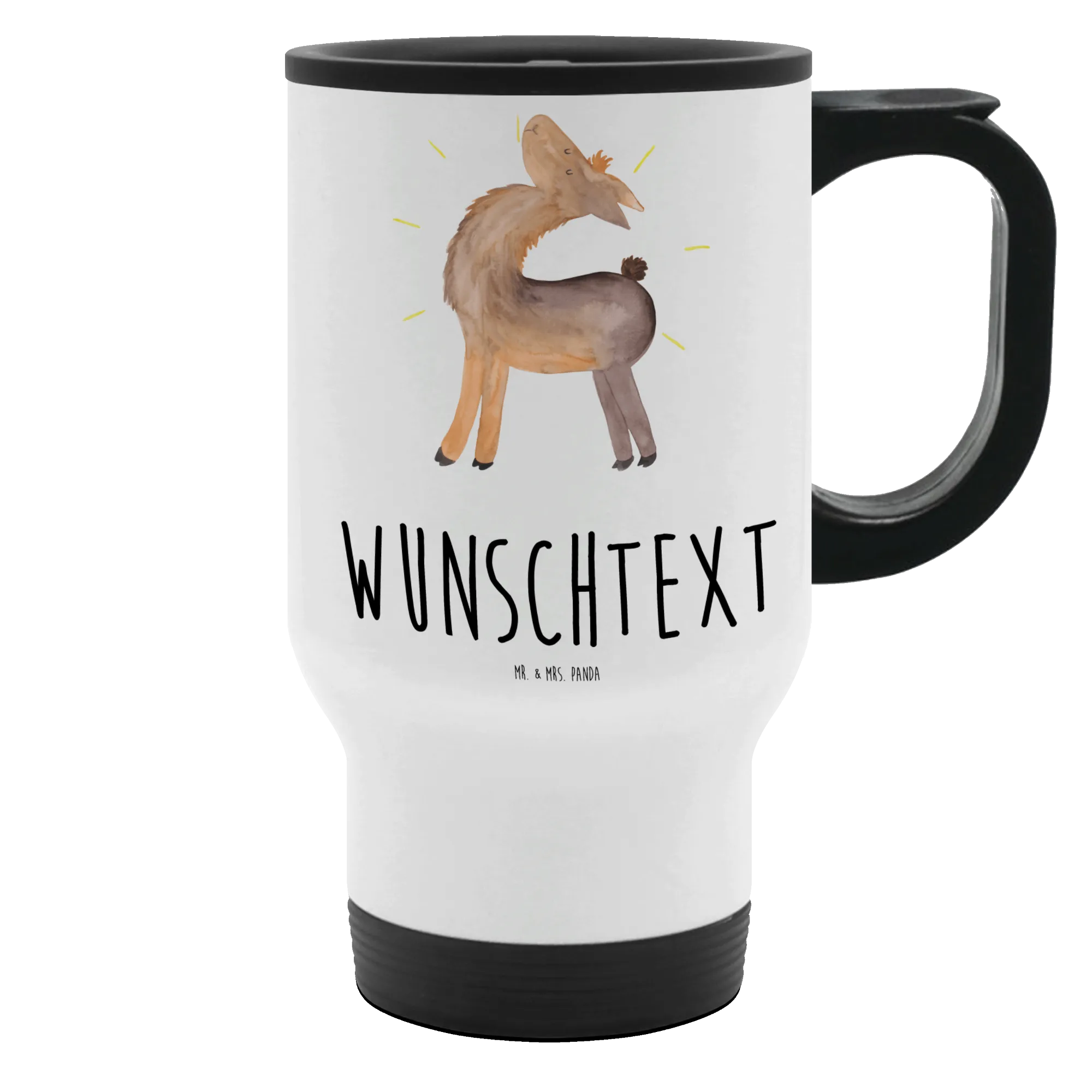 Du liebst es, neben deinem Kaffee oder Tee auch eine Portion Lebensfreude mitzunehmen? Dann ist unser personalisierter Thermobecher mit dem strahlenden Lama stolz genau das Richtige für dich!
