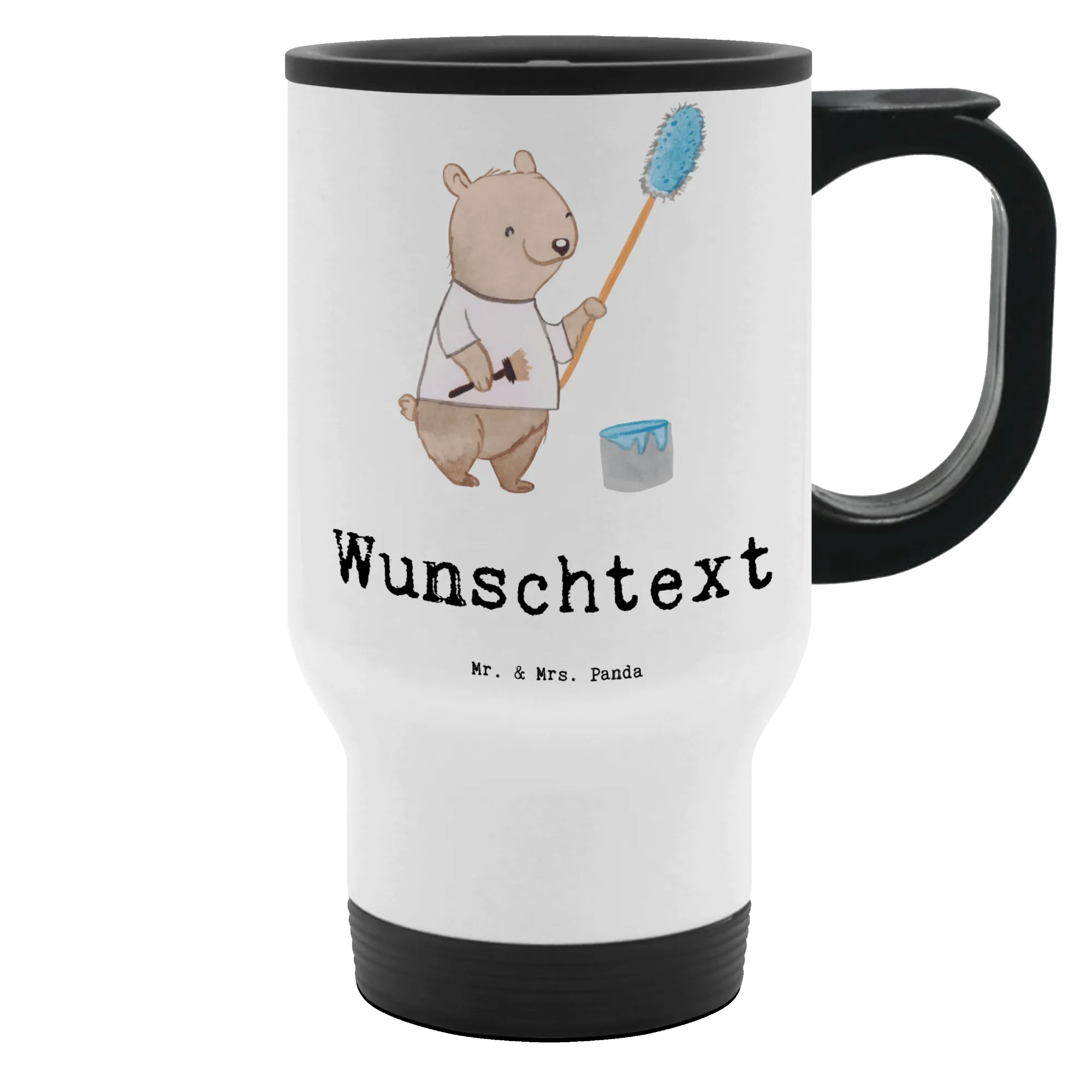 Bitte beachte, dass der Becher nicht spülmaschinenfest ist und sanfte Handwäsche empfohlen wird. Mache mit diesem einzigartigen, personalisierten Thermobecher jedem Maler eine Freude!
