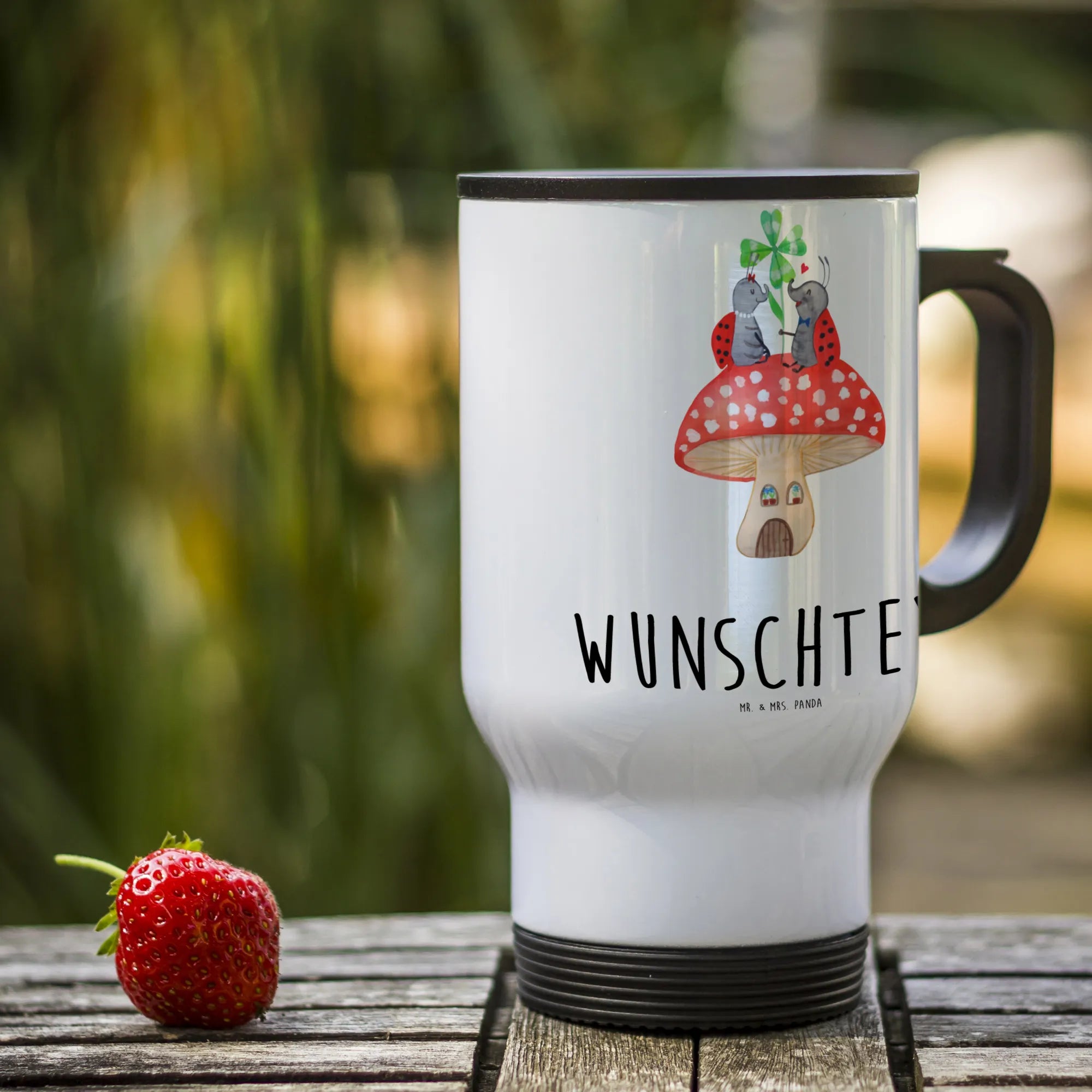 Personalisierter Thermobecher Marienkäfer Paar Fliegenpilz