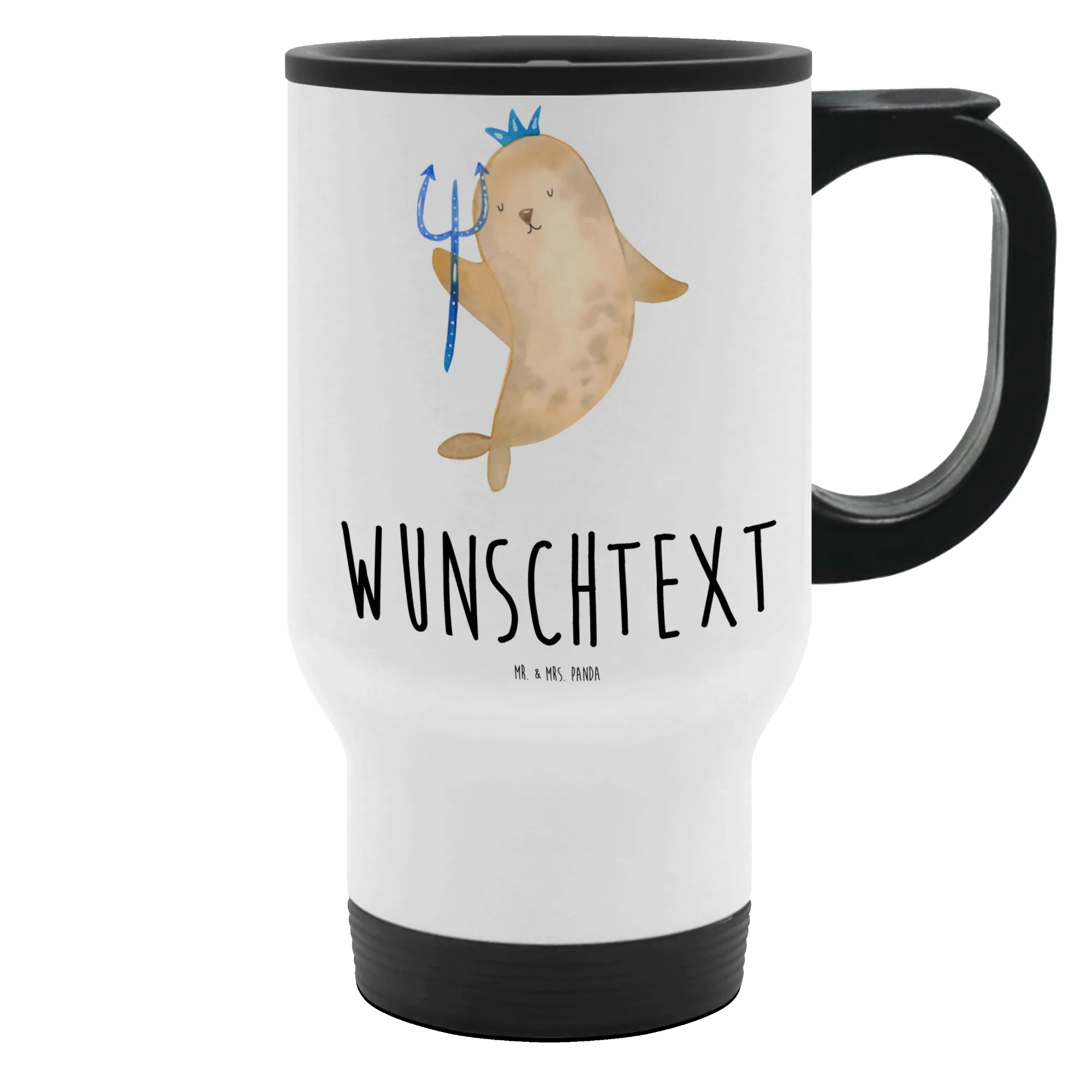Mit einem Durchmesser von 85 mm und einer Füllmenge von 390 ml bietet er ausreichend Platz für deinen Lieblingstee oder -kaffee. Handgezeichnet von Mrs. Panda, bringt das niedliche Wassermann-Motiv mit der Robbe, die eine Krone trägt, deinen Kaffeegenuss auf ein anderes Level!